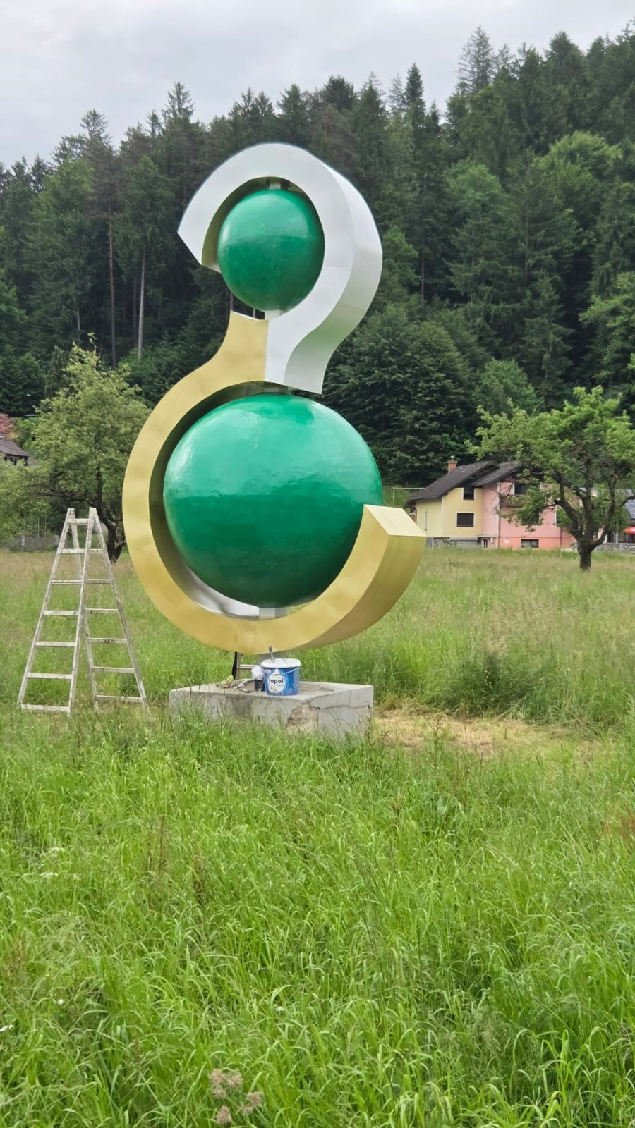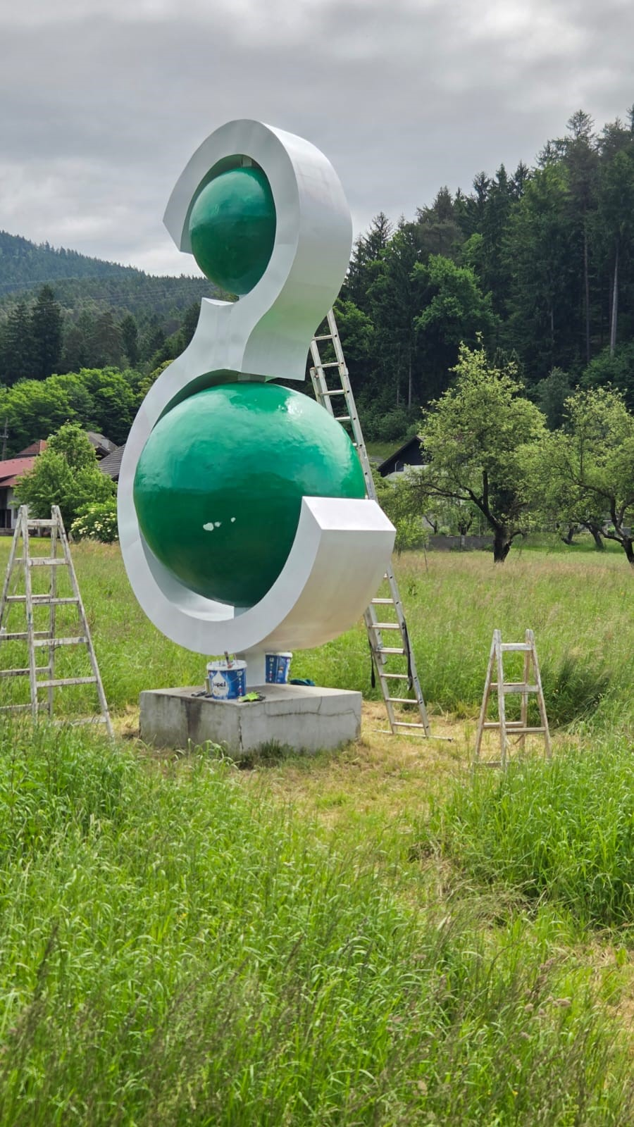 Včerajšnji namig je danes postal resničnost – pred severnim vhodom v Slovenj Gradec obiskovalce in domačine že pričakuje ikonična skulptura »S«, delo umetnika Pina Poggia iz leta 1969, v popolnoma novi barvni preobleki: zlata za črko S in zelena za krogli.