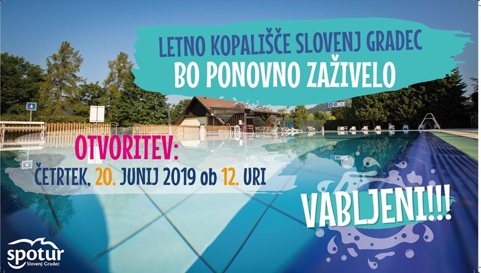 Letno kopališče Slovenj Gradec bo odprto vsak dan (ob lepem vremenu) med 9.00 in 21.00 uro. Na njem pa bodo vso sezono potekale zabavne ustvarjalne delavnice za otroke, sezono pa bodo konec avgusta zaključili z družabno prireditvijo Zadnji čof v bazen.