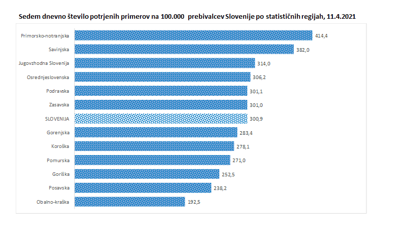 14-dnevna incidenca v koroški regiji trenutno znaša 649,4, 7-dnevna pa 278,1, kar je pod Slovenskim povprečjem.