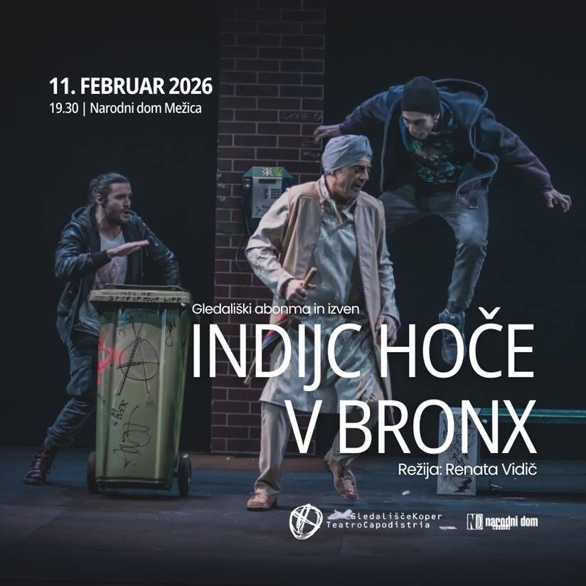 Tokrat so v goste povabili zasedbo Gledališča Koper, ki bo v sredo, 11. februarja 2026, ob 19.30 uri, navdušila z dramo Indijc hoče v Bronx.