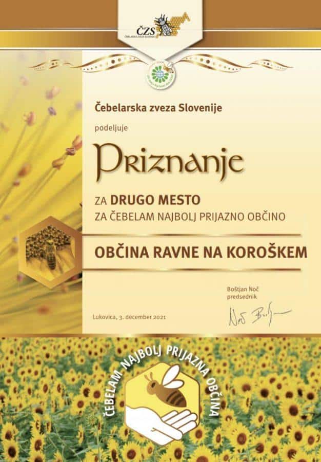 "Kot drugo uvrščena Občina Ravne na Koroškem si želimo, da bo pozitiven odnos do narave in čebel v slovenskih občinah prisoten tudi v prihodnje," so po prejemu priznanja, na katerega so zelo ponosni, sporočili iz ravenske občine.