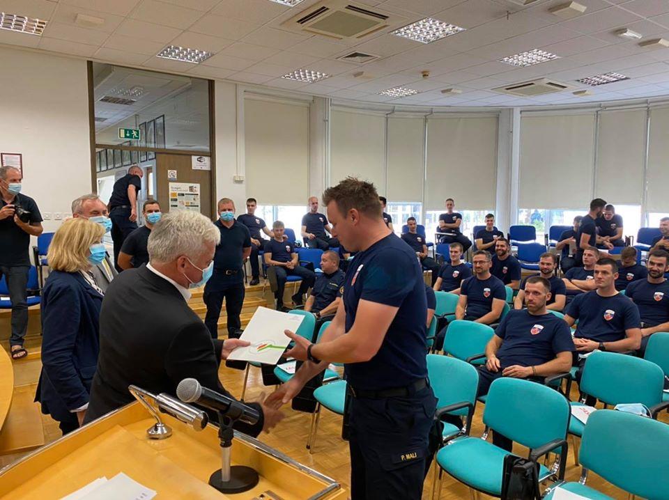 Minister za obrambo mag. Matej Tonin je novim poklicnim gasilcem čestital ob uspešno končanem usposabljanju. Izpostavil je zahtevnost in odgovornost dela operativnih gasilcev, saj so od njihovega ravnanja odvisna človeška življenja, in pomen nenehnega usposabljanja ter dodal, da Izobraževalni center za zaščito in reševanje na Igu s podenotami dobro deluje, kar se odraža tudi v tem, da se v njem usposabljajo številni gasilci iz Slovenije in tujine.