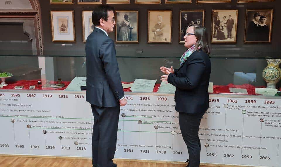 Delegacijo veleposlaništva je v Dvorcu Radlje sprejel župan Alan Bukovnik, na srečanju pa so se pridružili tudi podžupan Robert Potnik, direktorica občinske uprave Marjana Švajger, vodja urada Katja Burja Kotnik in vodja projektov Klara Cigler.