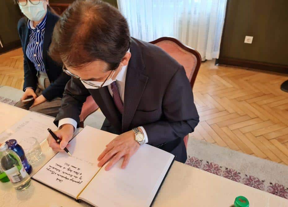 Ob koncu uradnega dela se je japonski veleposlanik podpisal v zlato knjigo ter dodal še nekaj misli. Župan mu je v znak zahvale za obisk in morebitnega sodelovanja, katerega se veselijo vsi občani in občanke, podaril knjigo o kulturni dediščini Radelj ob Dravi in izdelke iz sibirskih borovnic, ki uspevajo na japonskem otoku Hokaido, kjer jih imenujejo sadež večne mladosti.