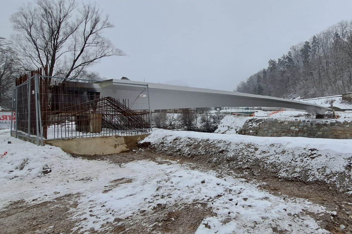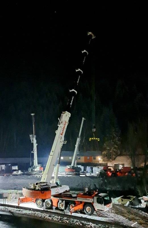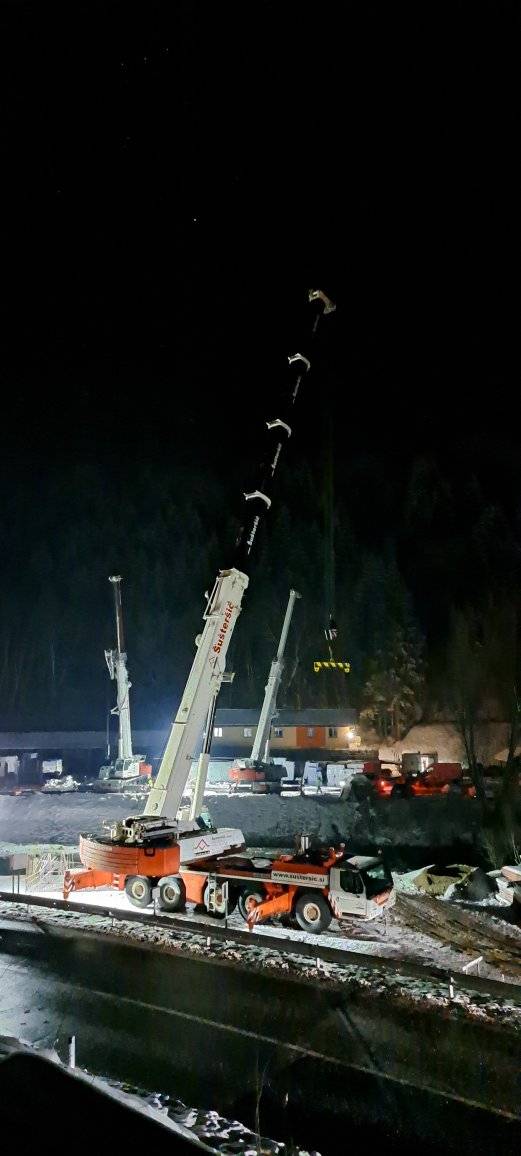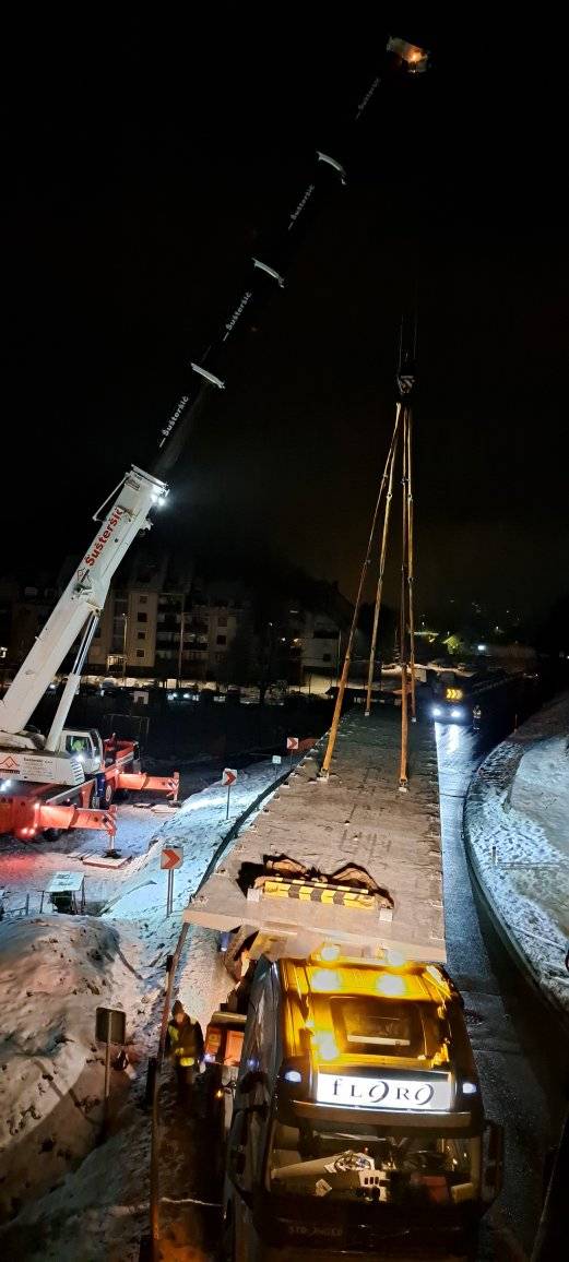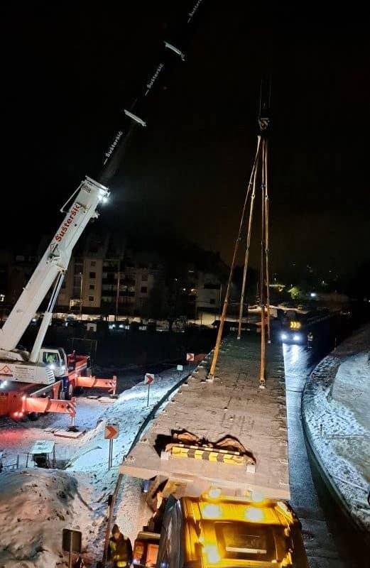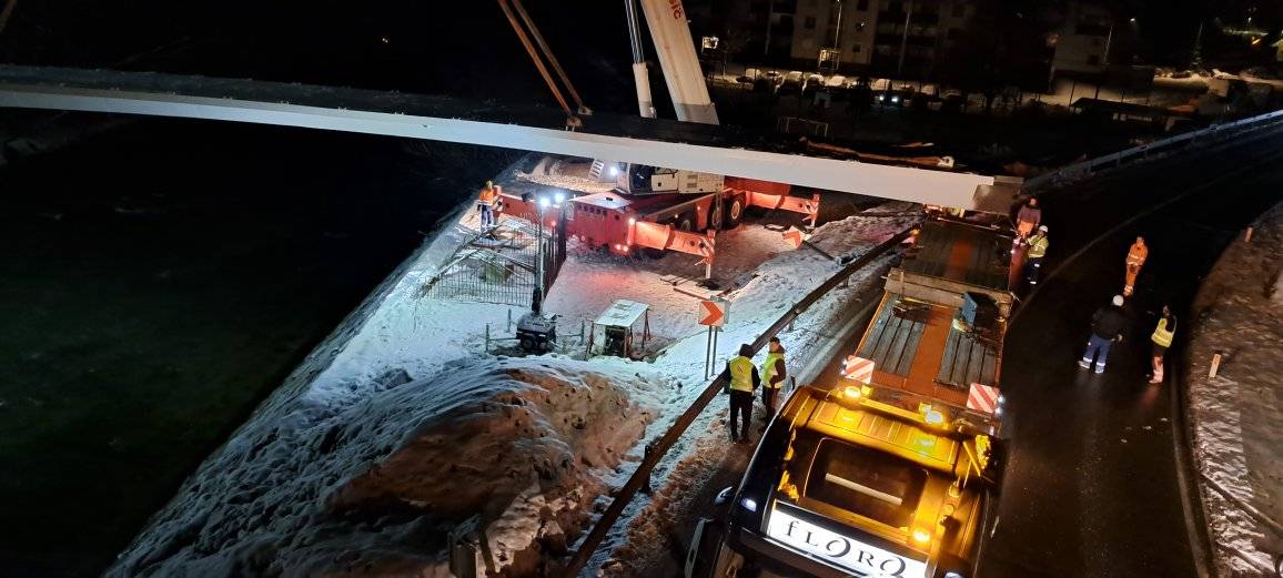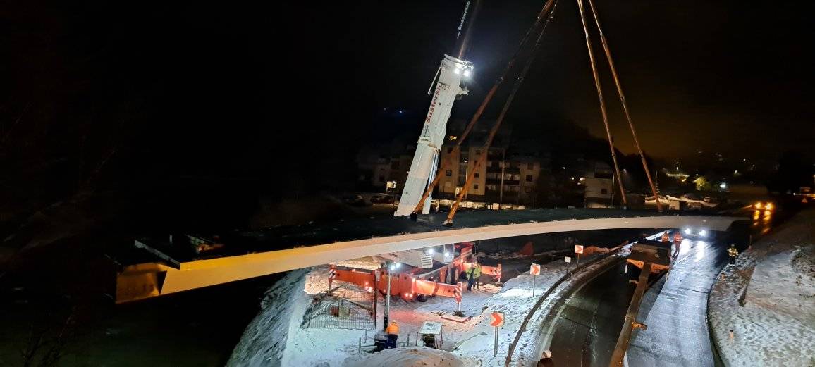 Na gradbišču je bilo pripravljeno vse potrebno za vgradnjo (delovni platoji za avtodvigala, betonski oporniki). Glavna cesta je bila zaprta samo za čas dostave in dviga jeklene konstrukcije. Takoj za tem je bila tovorna prikolica s ceste odstranjena in promet sproščen. Zastavljeneno so izvedli pretekli vikend.