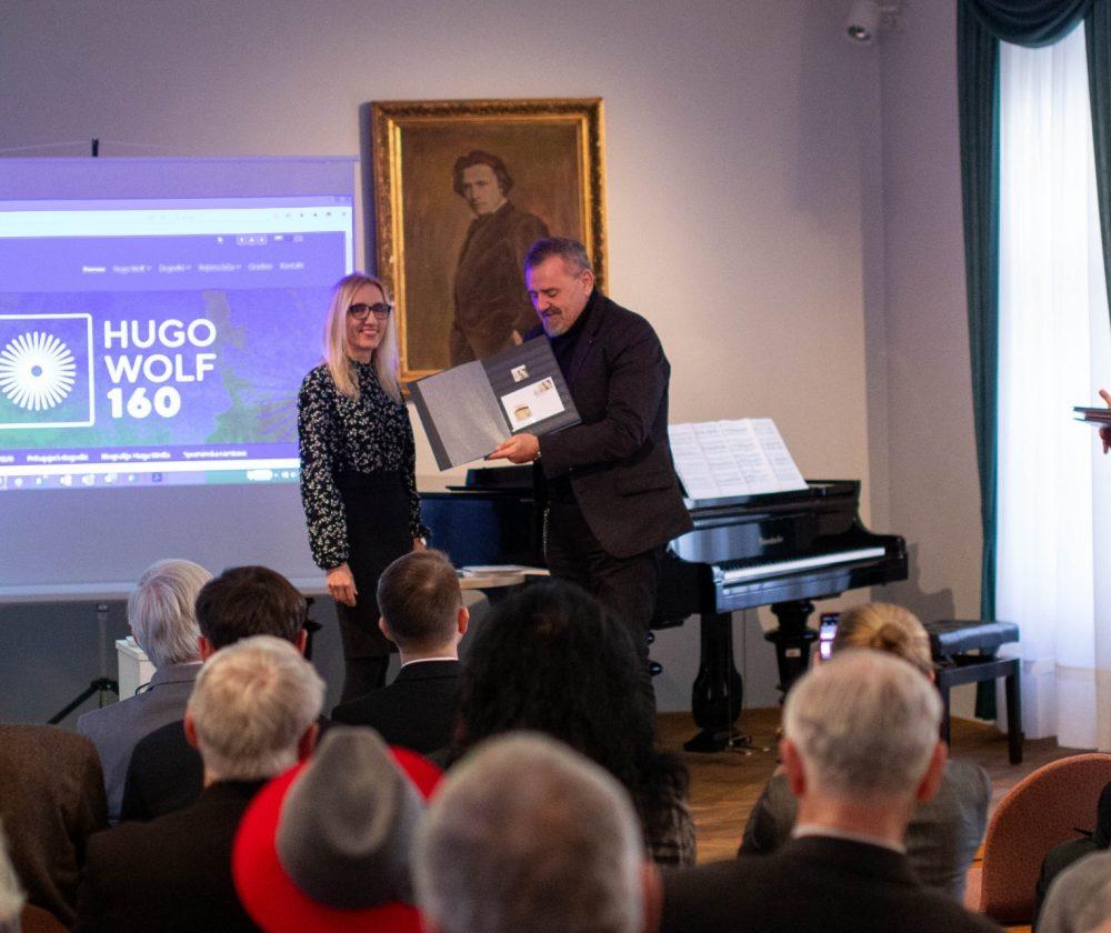 V sklopu Sosedskega dialoga Slovenija–Avstrija je Ministrstvo za kulturo leto 2020 razglasilo za jubilejno leto Huga Wolfa. Ob tej priložnosti je danes v Slovenj Gradcu potekala novinarska konferenca, na kateri so predstavili poštno znamko s podobo Huga Wolfa, celostno grafično podobo in program jubilejnega leta, ki se bo odvijal v Sloveniji in tujini. Poskrbljeno pa je bilo tudi za glasbeni program, zanj sta poskrbeli Maja Kastratovnik in Tanja Klančnik.