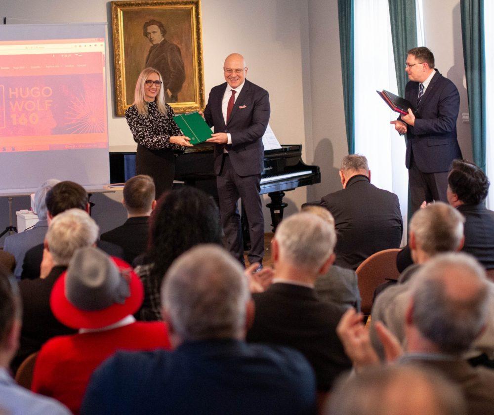 Minister za kulturo mag. Zoran Poznič je izpostavil: "V teh norih časih 21. stoletja lokalne skupnosti predstavljajo tisti temelj, fundament, na katerem se lahko gradi družba prihodnosti. Kaj bolj te temelje osmišlja kot zavedanje o tem, kdo smo, od kod prihajamo, česa vsega smo sposobni in kakšen je naš domet. Naš domet je do zvezd. To ni zgolj priložnost, da Slovenj Gradec utemelji svoje bistvo skozi zgodovino, predvsem nastopa v povorki vsega tistega, kar utemeljuje družbo v 21. stoletju – in to je varovanje snovne in nesnovne kulturne dediščine. Teh 160 let Huga Wolfa je hkrati tudi čas za nov zagon, novo energijo, poti, razmisleke. Iz preteklosti, ne samo v sedanjost, temveč v prihodnost. Ta konferenca je začetek nove poti, novega samozavedanja, predvsem pa lokalne samozavesti."