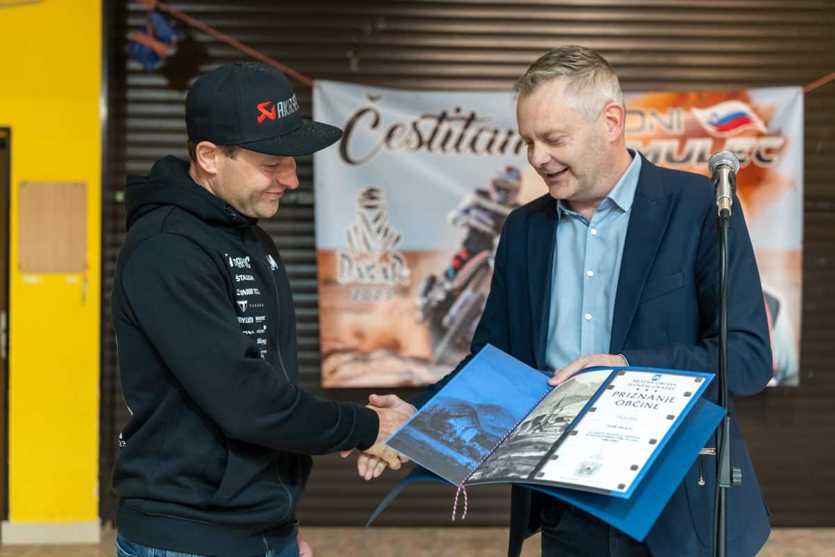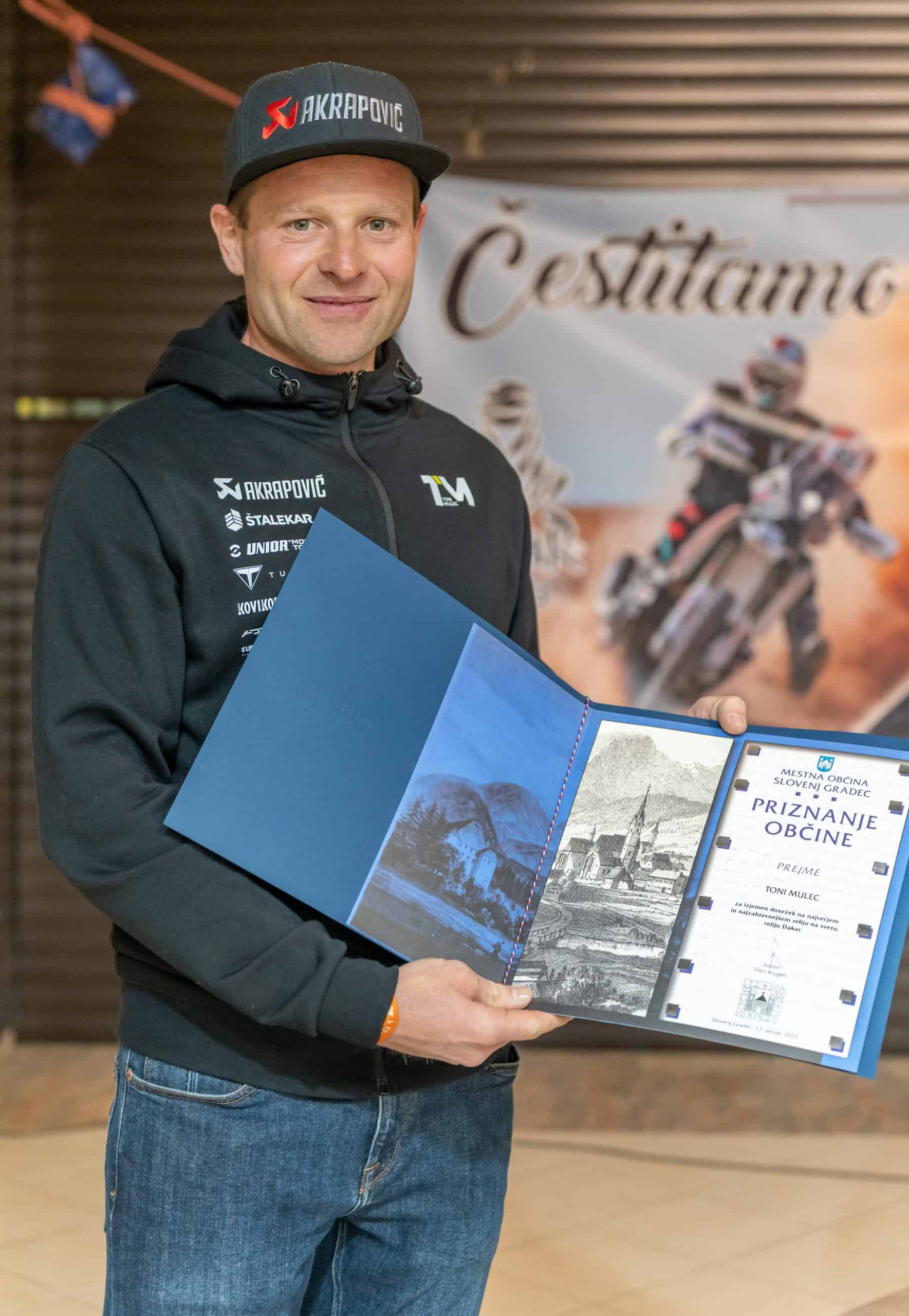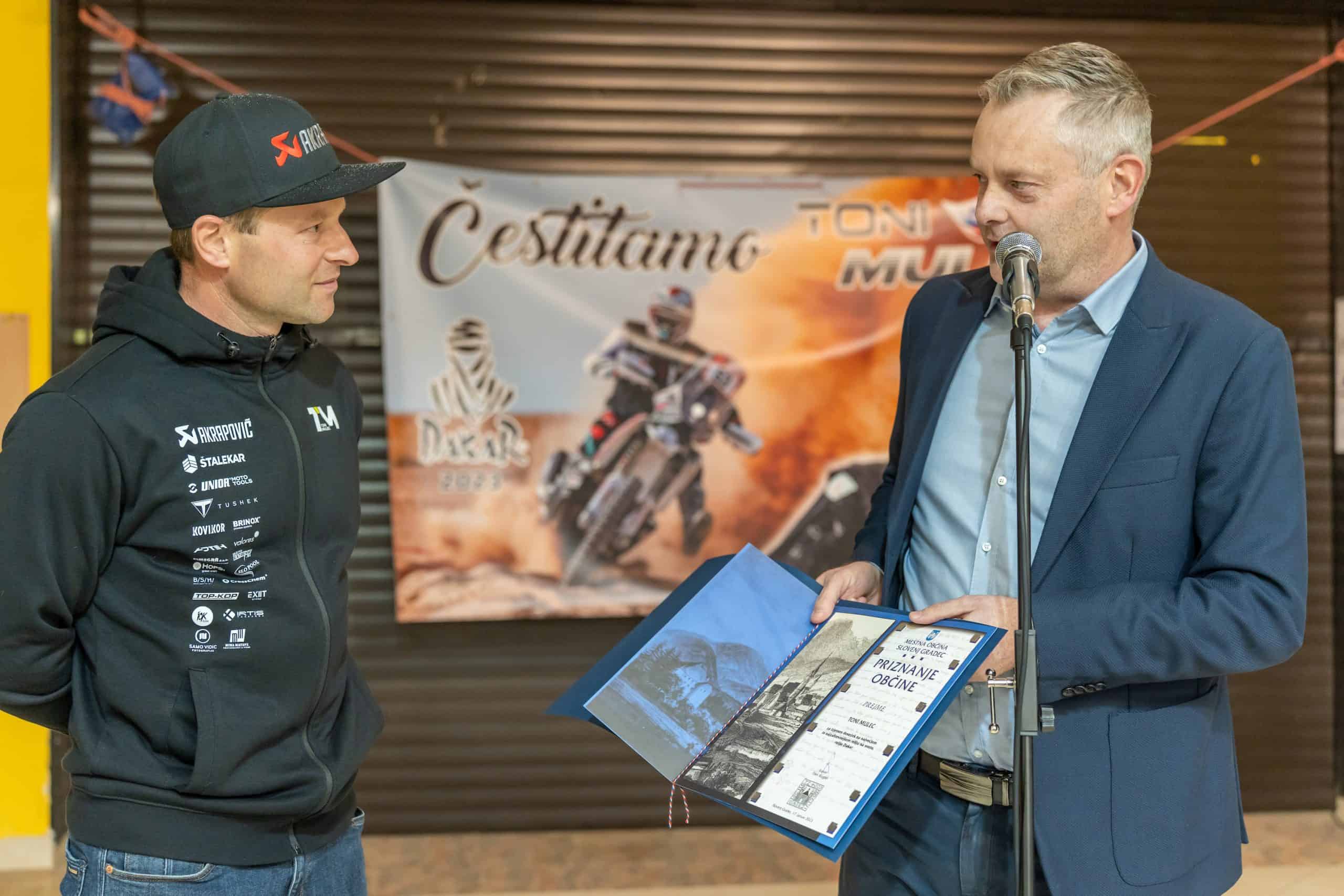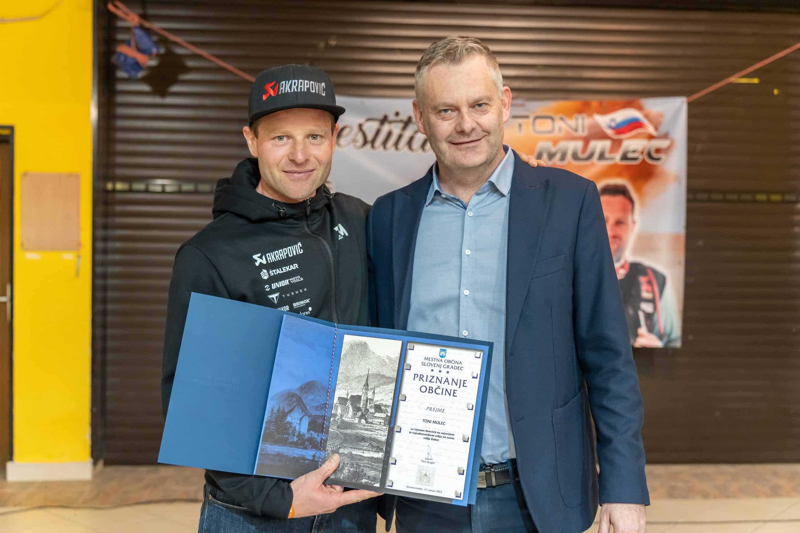 Velika množica navijačev in podpornikov je Toniju tako izkazala veliko spoštovanje v domačem kraju, kjer se zavedamo, da je velik ambasador Koroške in Slovenije v svetu. S ponosom mu je čestital in izrazil dobrodošlico tudi župan Mestne Občine Slovenj Gradec Tilen Klugler. Podelil mu je priznanje MO Slovenj Gradec ter dodal, da je leto 2023 leto, ko imamo tudi mi takega šampiona, da ga lahko pošljemo na to najtežjo preizkušnjo." Nekaj dni pred odhodom ga je Toni poklical in mu povedal, da ima cilj in tam bo odvozil svoje ne glede na to, če dobi kakšen evro ali ne. In res... Odvozil je svoje in uspelo mu je. Na koncu se je župan pošalil, da v rosnih letih je res vozil kot en mulc, danes pa je to Mulec - velik šampion in ponosni smo!