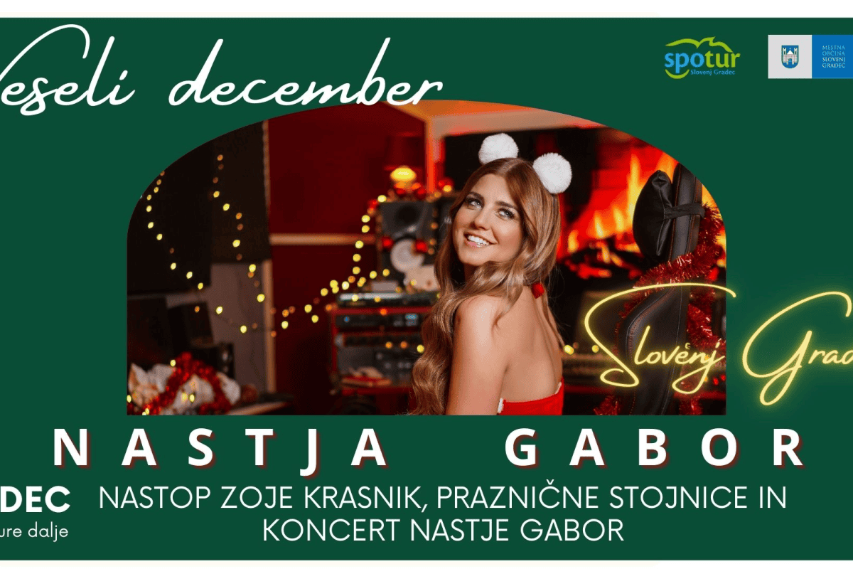 Od 16. ure dalje bo potekal 𝗯𝗼𝘇̌𝗶𝗰̌𝗻𝗼-𝗻𝗼𝘃𝗼𝗹𝗲𝘁𝗻𝗶 𝘀𝗲𝗷𝗲𝗺, na katerem bodo svoje izdelke predstavljali številni rokodelci ter ostali ustvarjalci in prodajalci. Okrepčali se boste lahko z okusno praznično pijačo, različnimi jedmi ter posladkali z dobrotami, ki decembra zagotovo ne smejo manjkati. Na odru bo za praznično vzdušje s svojim glasbenim programom od 19. ure dalje poskrbela 𝗡𝗮𝘀𝘁𝗷𝗮 𝗚𝗮𝗯𝗼𝗿, ki jo bo pospremil tudi nastop mlade pevke 𝗭𝗼𝗷𝗲 𝗞𝗿𝗮𝘀𝗻𝗶𝗸.