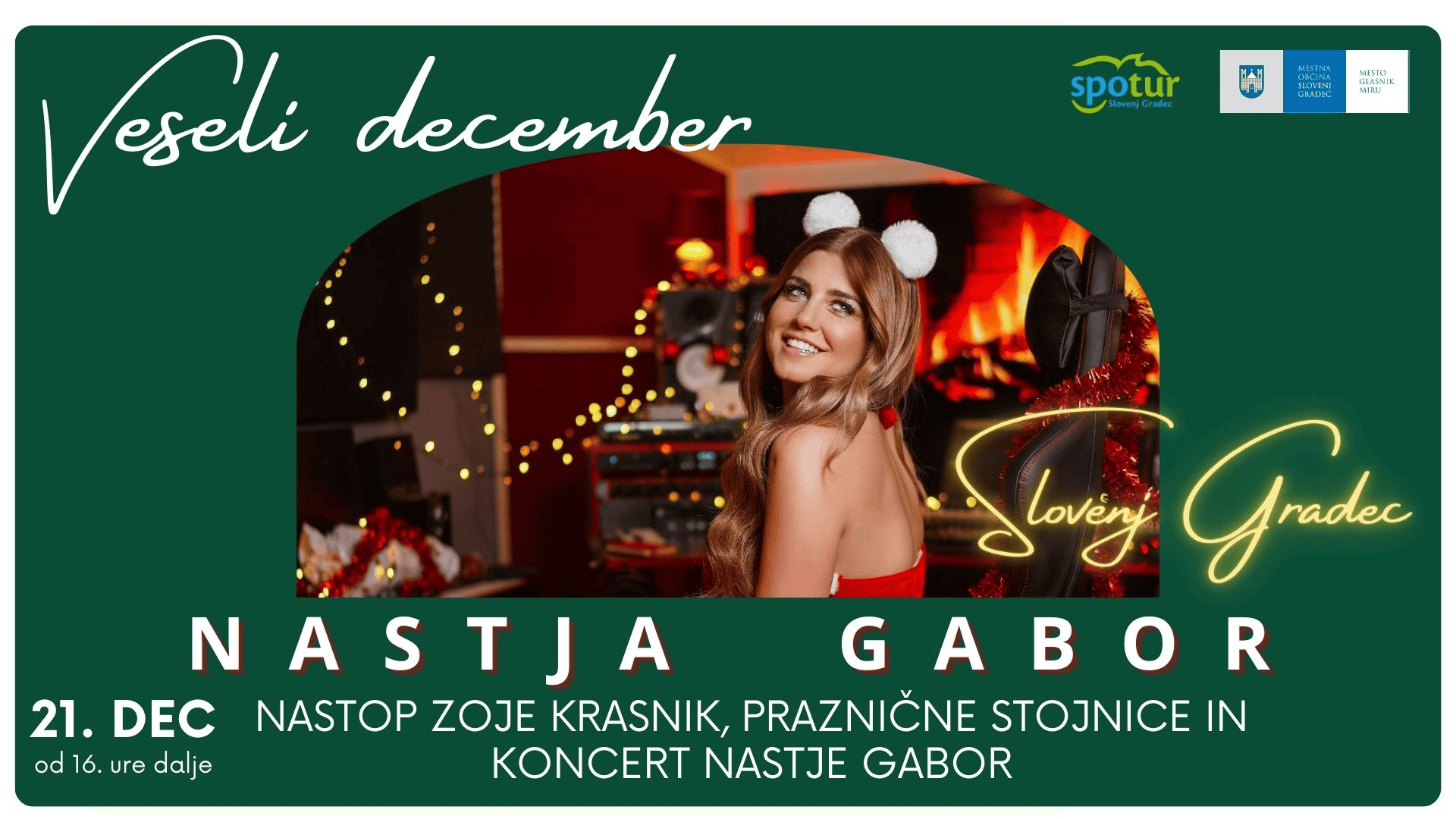Od 16. ure dalje bo potekal 𝗯𝗼𝘇̌𝗶𝗰̌𝗻𝗼-𝗻𝗼𝘃𝗼𝗹𝗲𝘁𝗻𝗶 𝘀𝗲𝗷𝗲𝗺, na katerem bodo svoje izdelke predstavljali številni rokodelci ter ostali ustvarjalci in prodajalci. Okrepčali se boste lahko z okusno praznično pijačo, različnimi jedmi ter posladkali z dobrotami, ki decembra zagotovo ne smejo manjkati. Na odru bo za praznično vzdušje s svojim glasbenim programom od 19. ure dalje poskrbela 𝗡𝗮𝘀𝘁𝗷𝗮 𝗚𝗮𝗯𝗼𝗿, ki jo bo pospremil tudi nastop mlade pevke 𝗭𝗼𝗷𝗲 𝗞𝗿𝗮𝘀𝗻𝗶𝗸.
