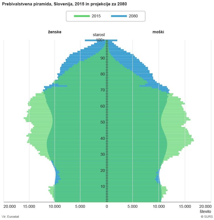 V naslednjih 65 letih naj bi se pomembno spremenila starostna sestava prebivalstva Slovenije. V 2018 so bili starejši (tj. osebe, stare 65 ali več let) 19,4 % prebivalstva, v letu 2057 naj bi bilo toliko starih skoraj 31 % prebivalcev Slovenije. Pričakovano trajanje življenja ob rojstvu se bo daljšalo. Dečki, ki se bodo leta 2080 rodili v Sloveniji, bodo lahko pričakovali 87 let življenja, deklice pa več kot 91 let.