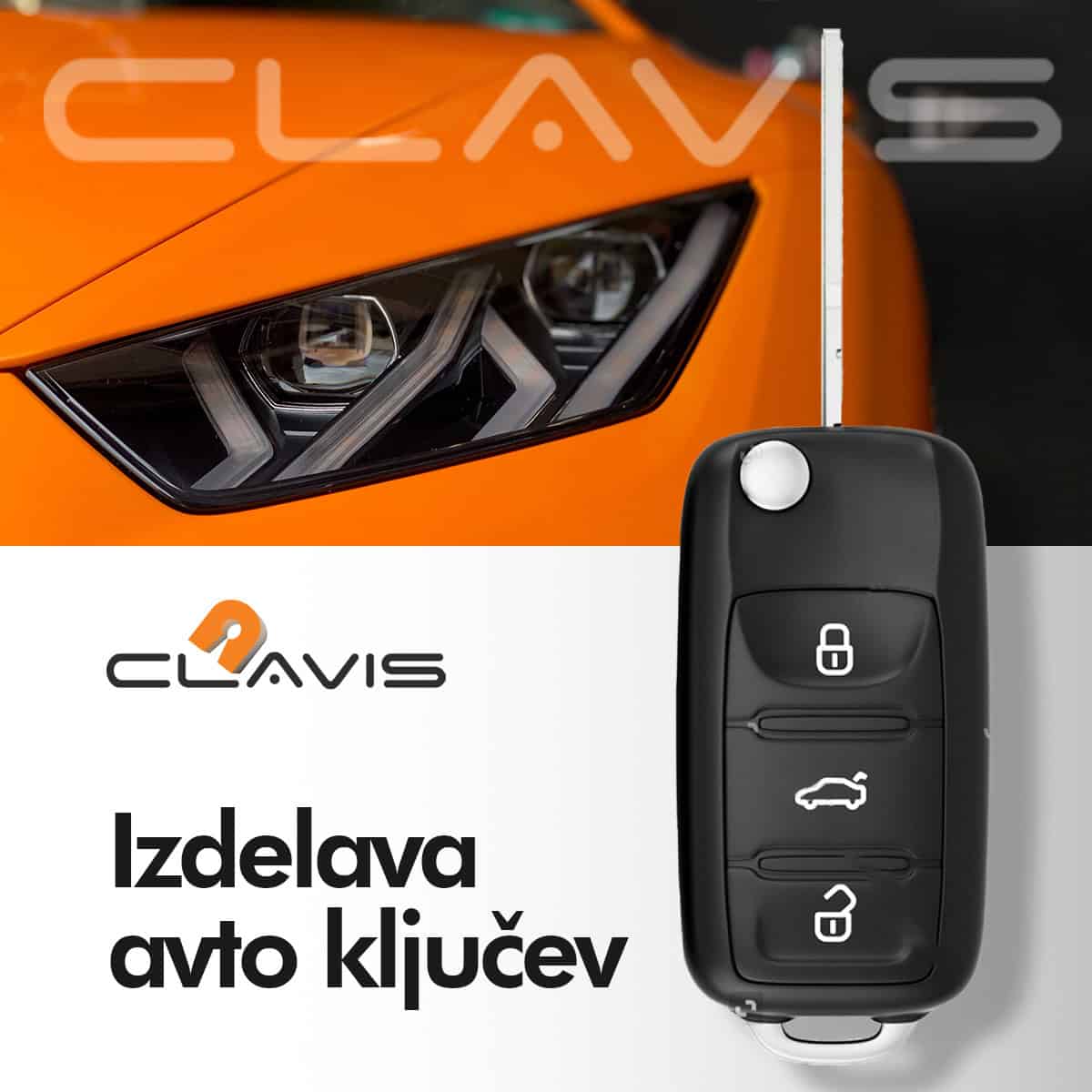 - Izdelava rezervnega ključa: če rezervnega ključa še nimate, je zdaj pravi čas, da ga izdelate. Pri podjetju Clavis vam lahko izdelamo kakovosten rezervni ključ za vaš avtomobil.
