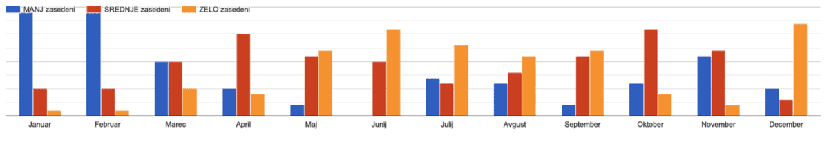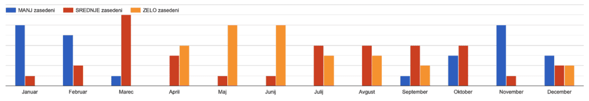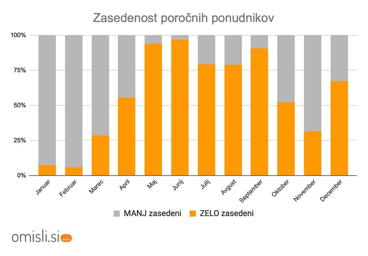 - Ponudniki so najbolj zasedeni od maja do septembra, kar posledično vpliva tudi na cene.