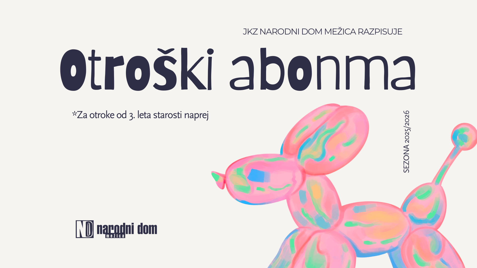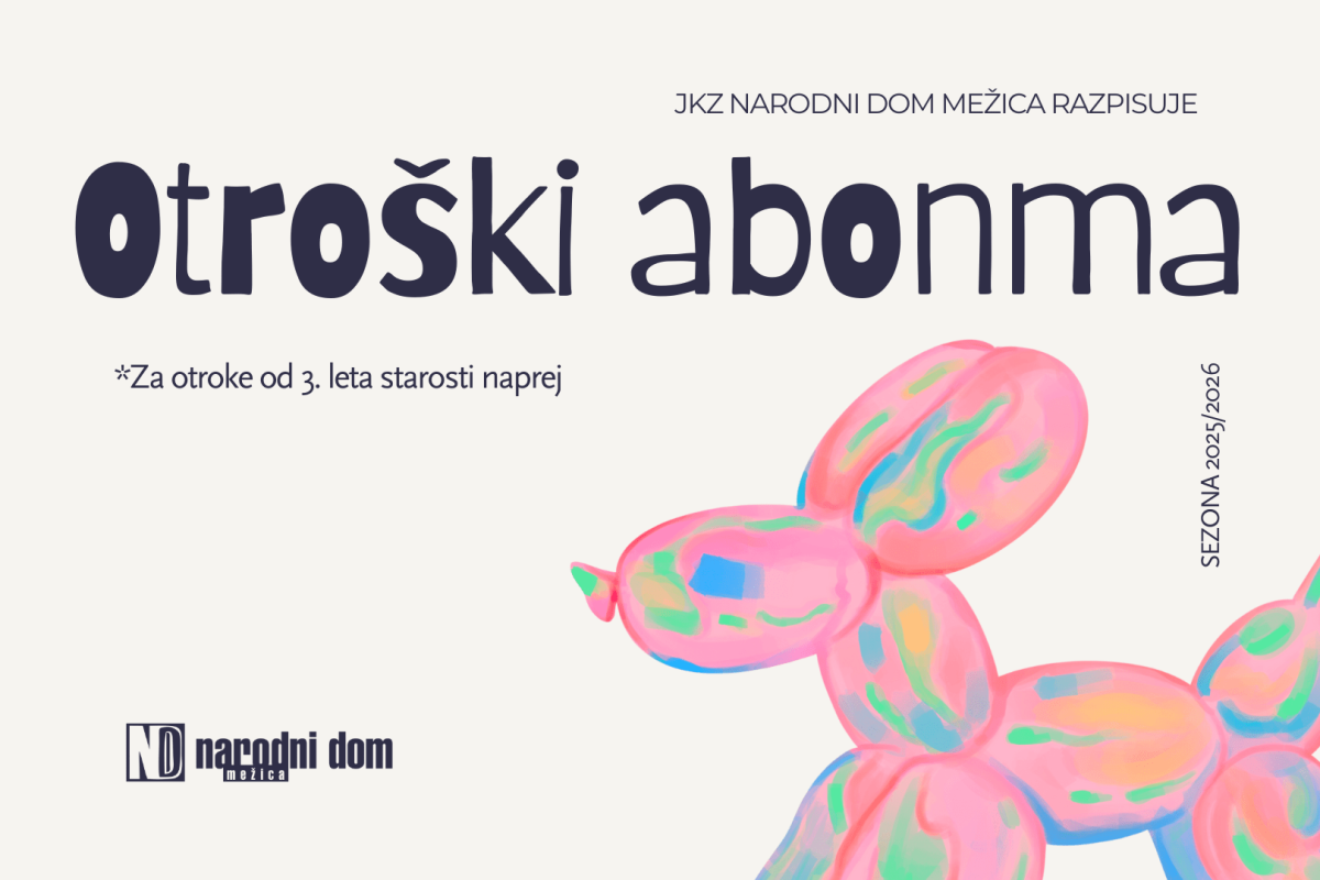 JKZ Narodni dom Mežica z veseljem razpisuje otroški abonma za sezono 2025/26. Najmlajši obiskovalci si bodo tudi letos lahko ogledali skrbno izbrane predstave profesionalnih slovenskih gledališč, ki otrokom ponujajo stik z vrhunsko umetnostjo. V Mežici držijo nivo in ponosno ohranjajo kakovost, saj si otroci zaslužijo le najboljše.