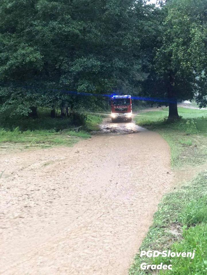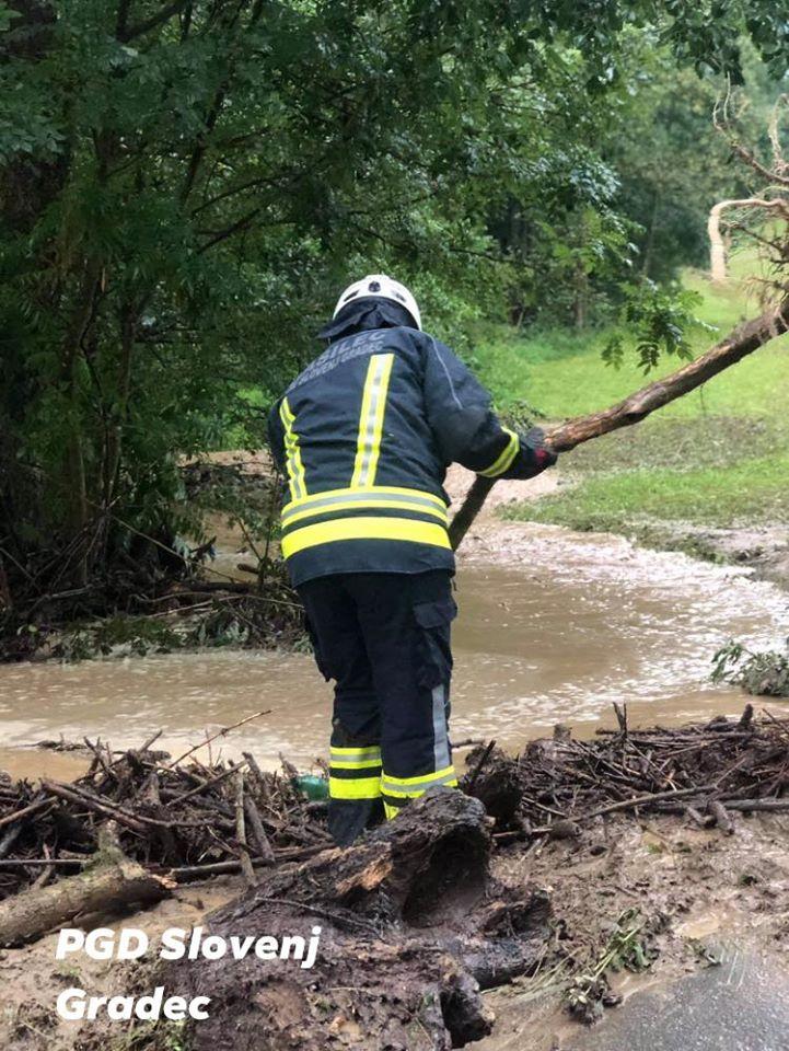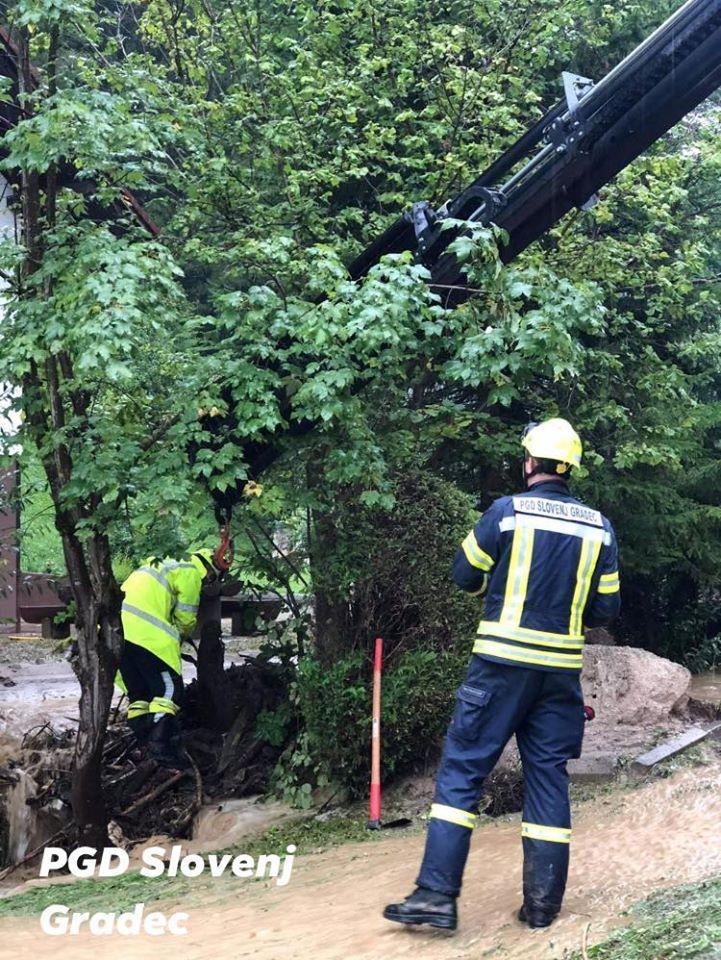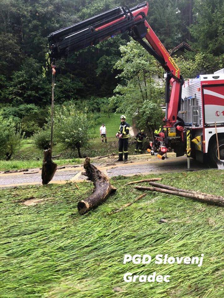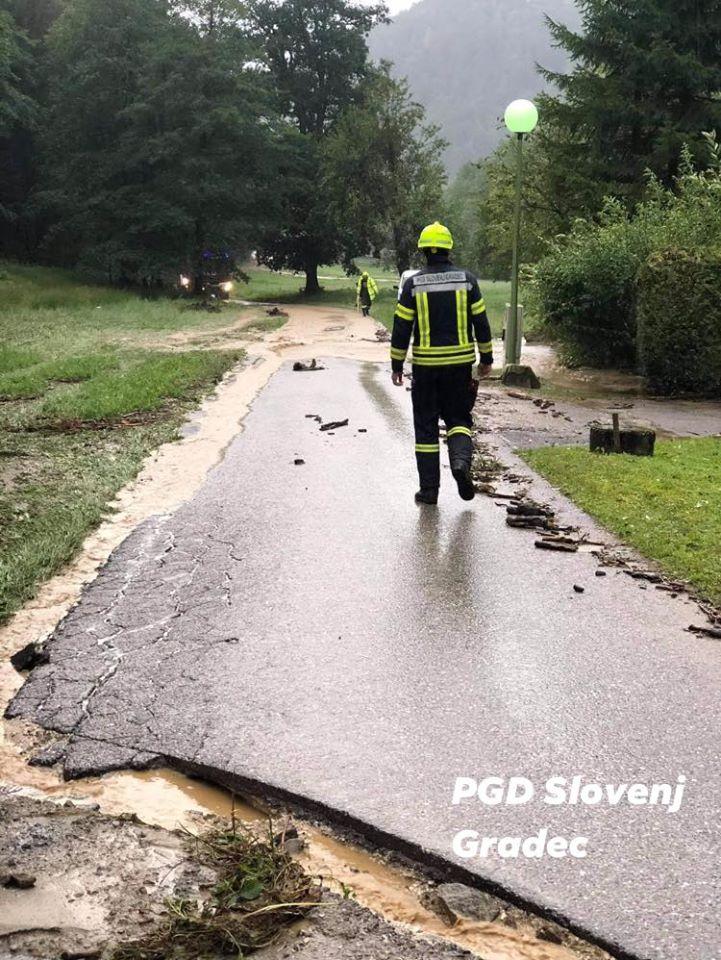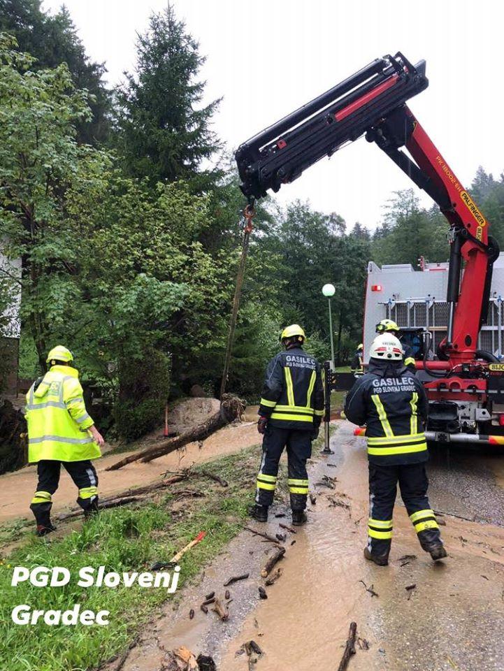"Danes je za nami zelo pestro popoldne. Okoli 16. ure se je nad našo občino razbesnelo neurje. Zaradi večjega števila intervencij so našo pomoč zahtevali kolegi iz PGD Pameče Troblje. Z več ekipami iz našega društva smo izvozili na več lokacij v Pameče, Troblje in na Gradišče, kjer smo črpali vodo iz poplavljenih objektov, preusmerjali hudournike od objektov nazaj v struge, čistili prepuste in struge ter pomagali pri sanaciji plazu. Izvozili smo z GVC 16/25, TRV 2D, GVM-1 in PV-1. Med posredovanjem na lokacijah smo iz ReCO Slovenj Gradec dobili še obvestilo o prometni nesreči na cesti Slovenj Gradec - Mislinja pri naselju Šmartno, kjer sta trčila osebno vozilo in avtodom. Zavarovali smo kraj nesreče in do prihoda policije usmerjali promet. Poškodovanih na srečo ni bilo. Izvozila je dežurna ekipa, ki je bila v enoti z TRV-1 ter ekipa iz terena z TRV 2D, ki se je kasneje vrnila odpravlajt posledice neurja. Nekaj utrinkov današnjega razdejanja pa v galeriji," pa so preko Facebooka sporočili člani PGD Slovenj Gradec.