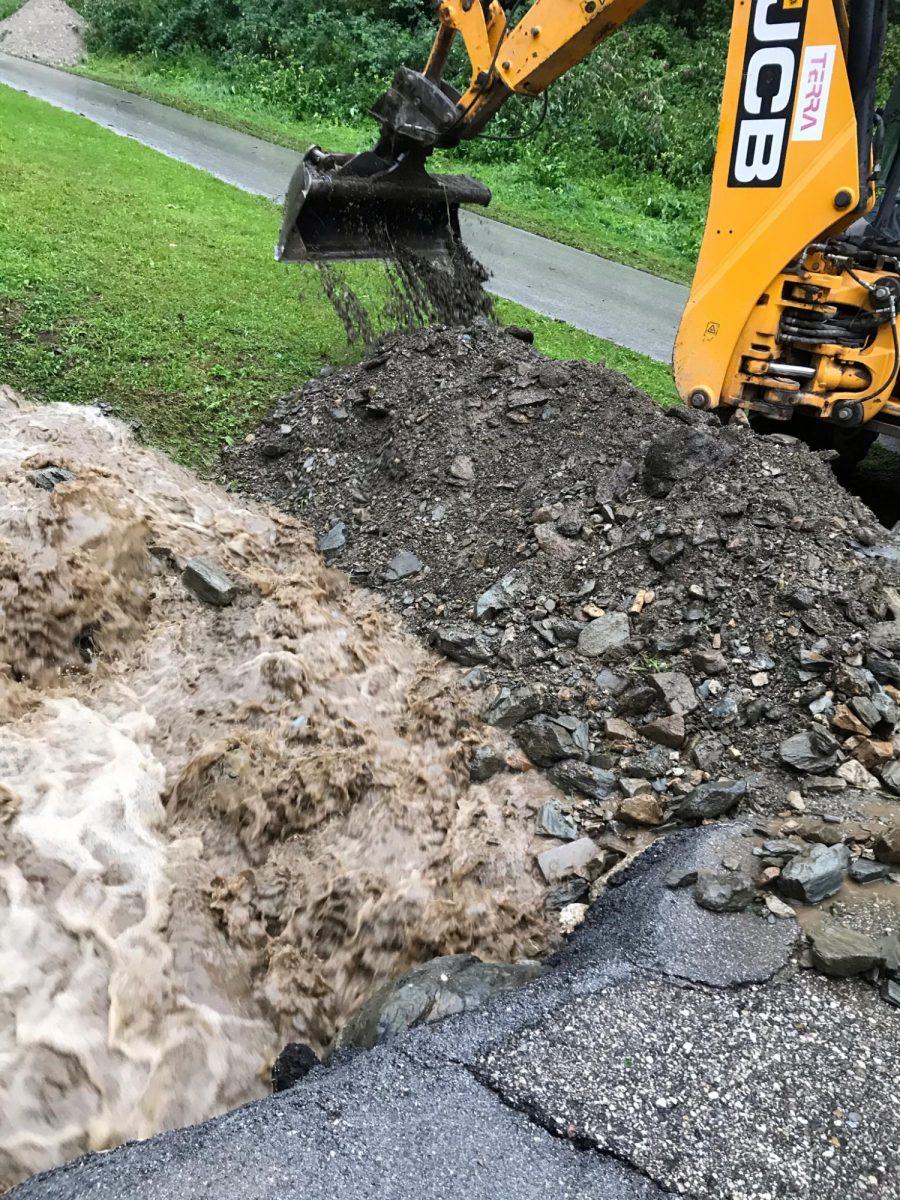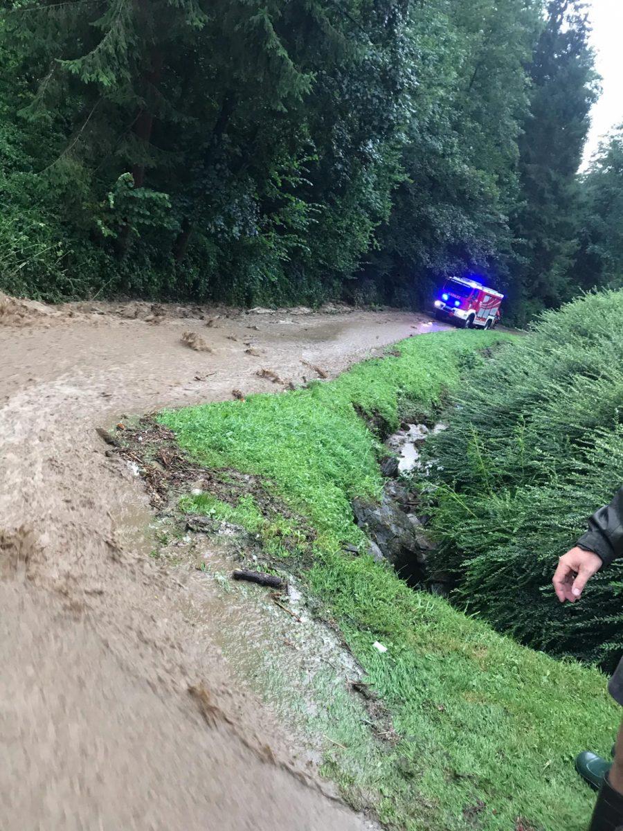 Ob 16.16 je neurje z močnim dežjem zajelo občino Mislinja. V Movžah so gasilci PGD Mislinja odmašili zamašene propuste in preusmerjali vodo.