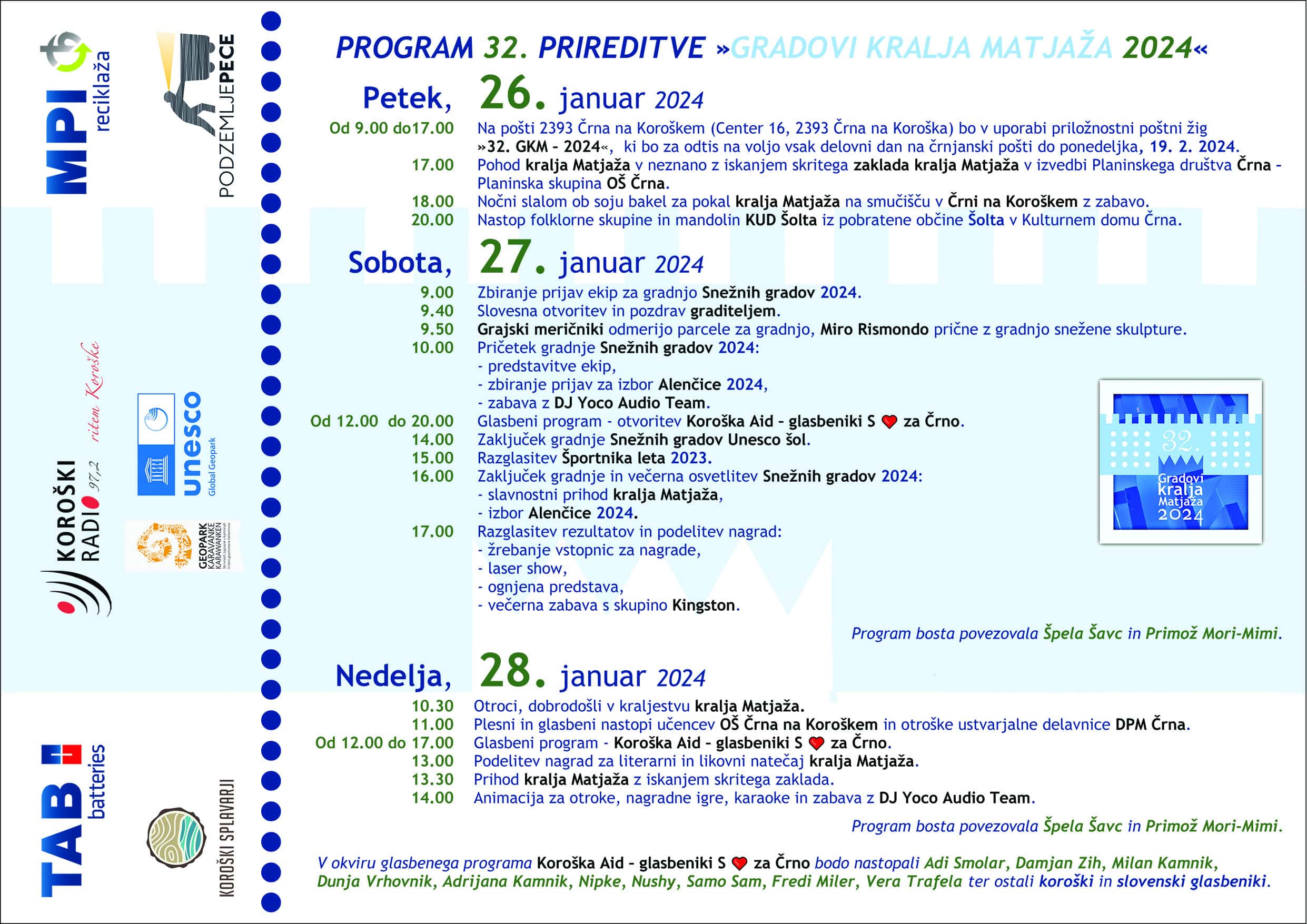 Sicer pa se bo prireditev odvijala že tradicionalno od petka, 26. januarja do nedelje, 28. januarja 2024.