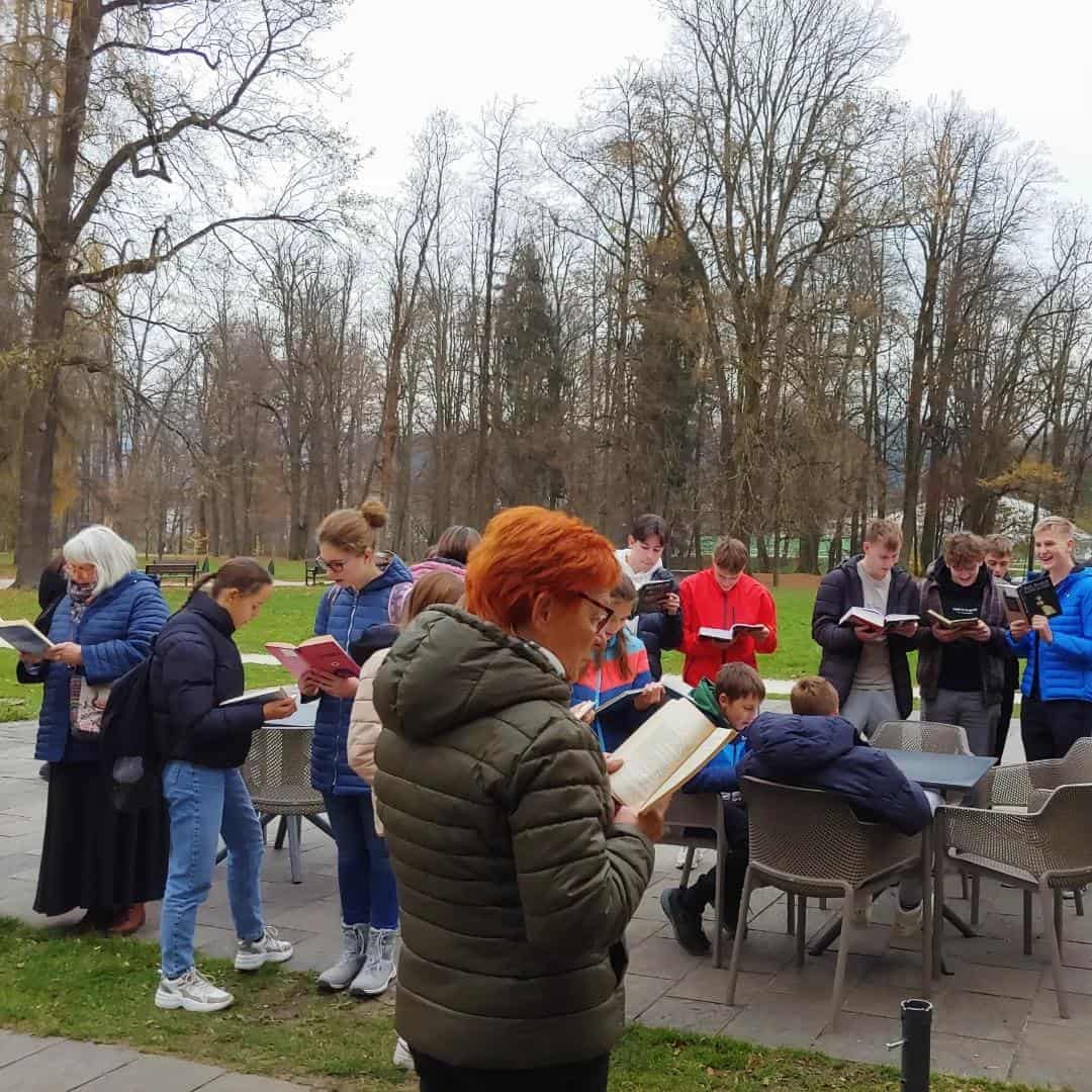 Ob 12. uri so se zbrali pred Grajsko časopisno kavarno Eleonora. Vsak udeleženec je s seboj prinesel knjigo, ki jo je glasno bral pet minut. Točno ob 12.10 so začeli vsi hkrati glasno brati, sodelujoči so vmes hodili, sedeli oziroma stali.