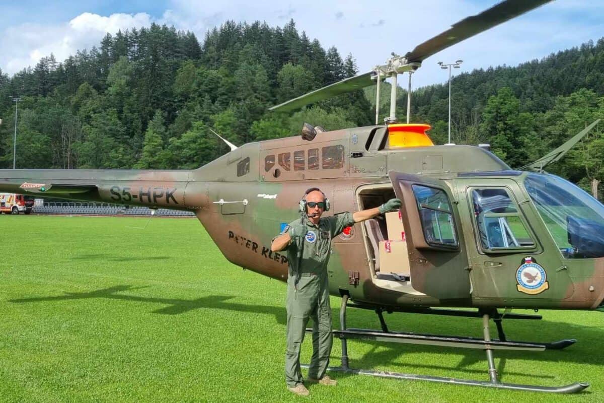 Še zadnji prevoz s helikopterjem opravimo v Luče, mi pa še vedno polni adrenalina poizkušamo končati misijo Poplave 2023.
