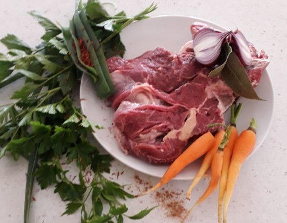 Da bo jutrišnje kosilo zadišalo po pravi nedeljski »župi« potrebujemo en dober kos mesa domače govedine (stegno, pleče, rebrca) in zelenjavo z vrta ter nekaj začimb, ki jih bo danes za nas in vas dal v lonec