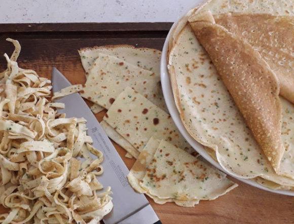 V ponvi močno segrejemo olje, in sicer na visokem ognju, da se bo zmes lepo prijela ponve. Ko je olje vroče, nanj dodamo eno zajemalko zmesi in počakamo, da palačinka dobi lepo rjavo-zlato barvo. Nato jo obrnemo. Ko so palačinke pečene jih narežemo po želji.