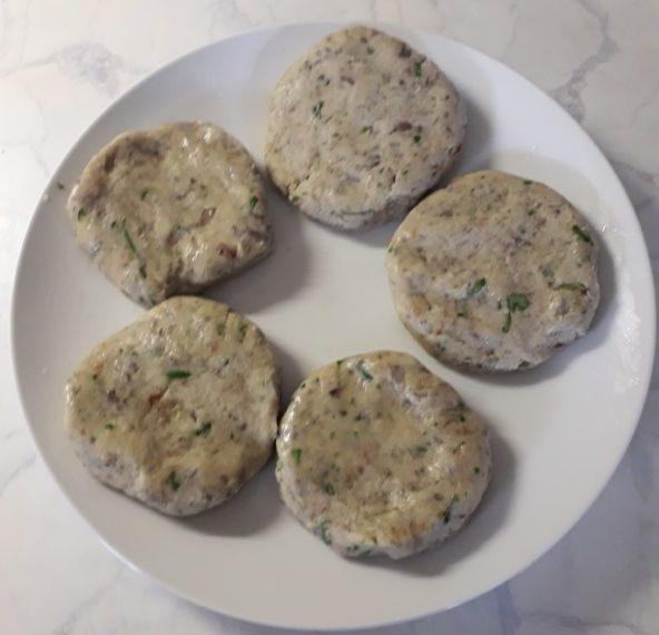 Vse sestavine zmešamo v mikserju, da dobimo gosto maso, iz katere naredimo fižolove polpete. (Slika 7) in jih popečemo na manjši količini olja.