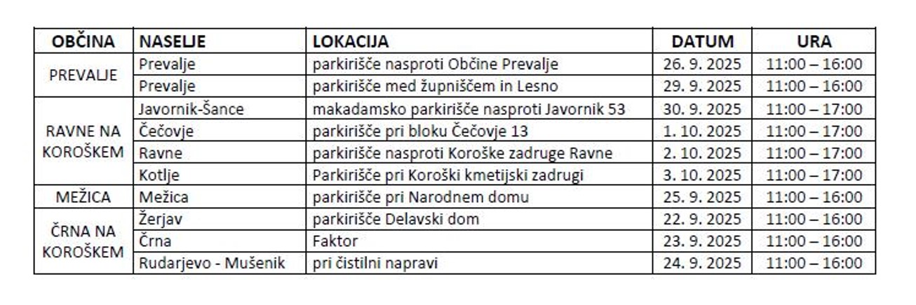 Kocerod obvešča občane občin: Prevalje, Ravne na Koroškem, Mežica in Črna na Koroškem, da se bo akcija odvoza kosovnih odpadkov izvajala po sledečem razporedu: