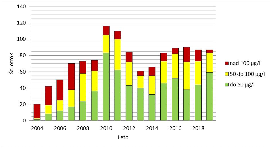 Povprečne vrednosti svinca v krvi triletnih otrok iz Zgornje Mežiške doline so bile v letu 2019 nižje kot v letih pred tem. Delež otrok z visoko vsebnostjo svinca v krvi (100 µg/l in več) je bil celo najnižji od začetka izvajanja meritev.