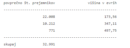 STA objavlja tabelo o povprečnem številu prejemnikov dodatka po posamezni višini v lanskem letu.
