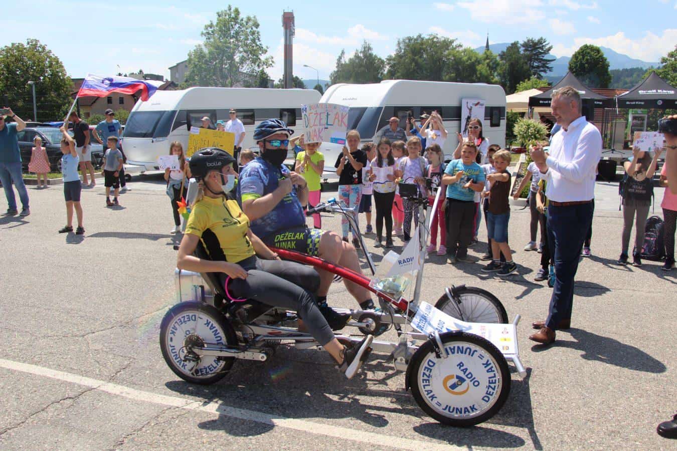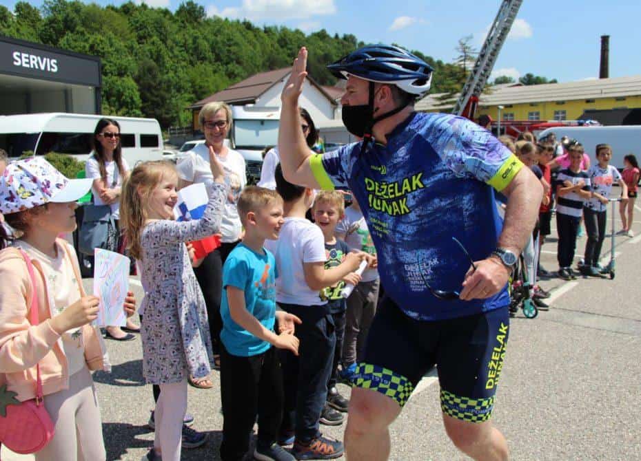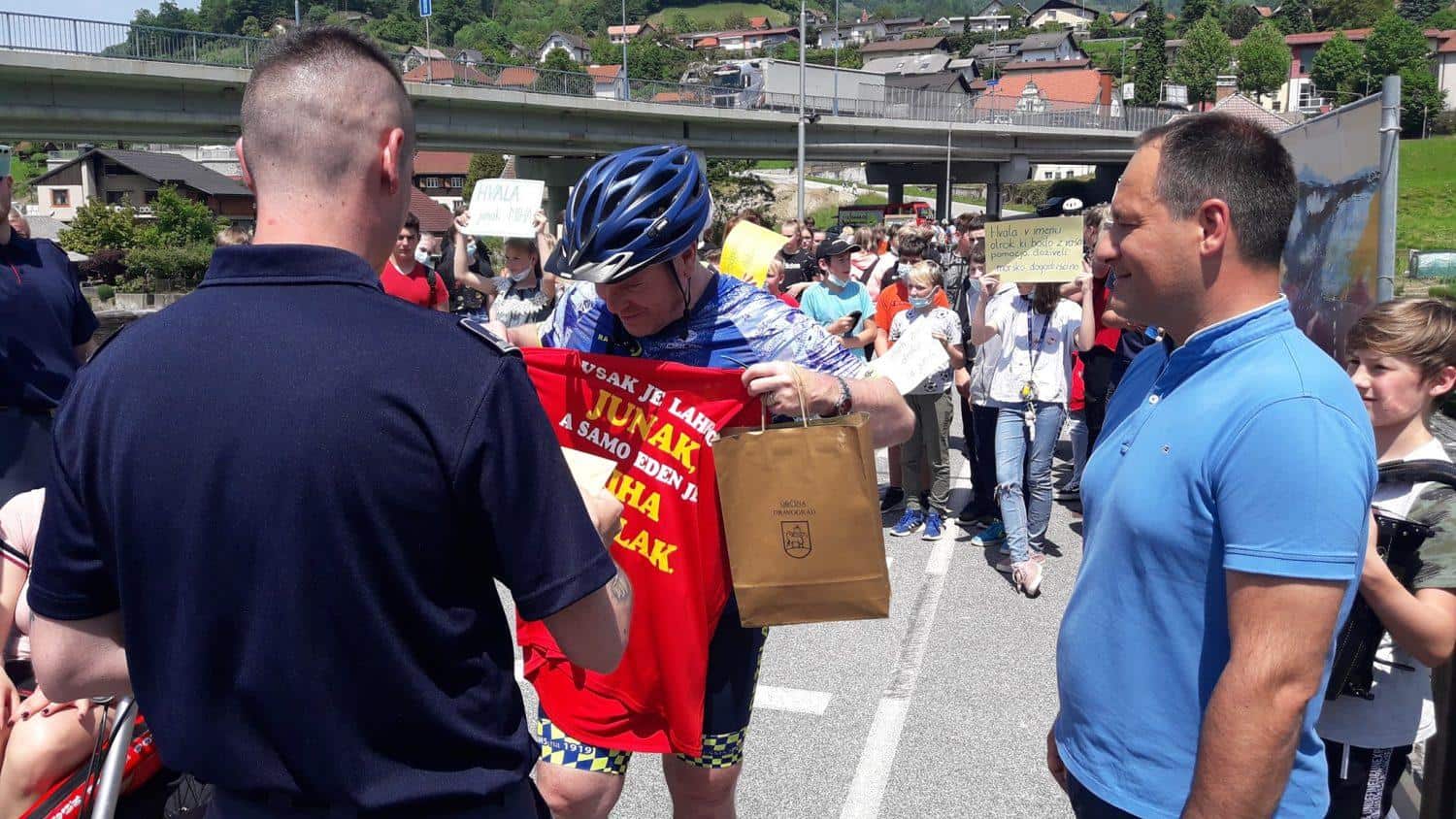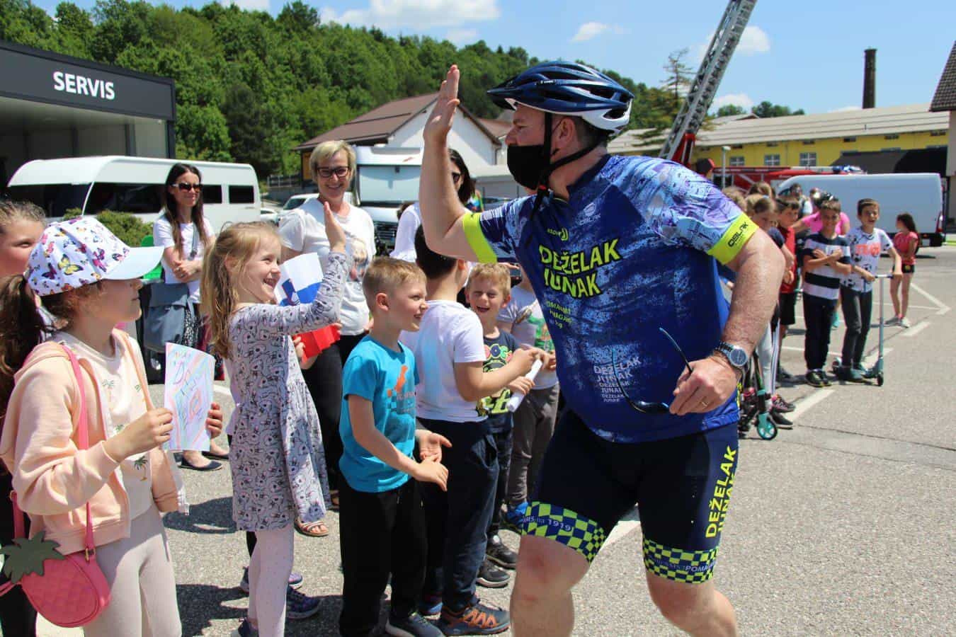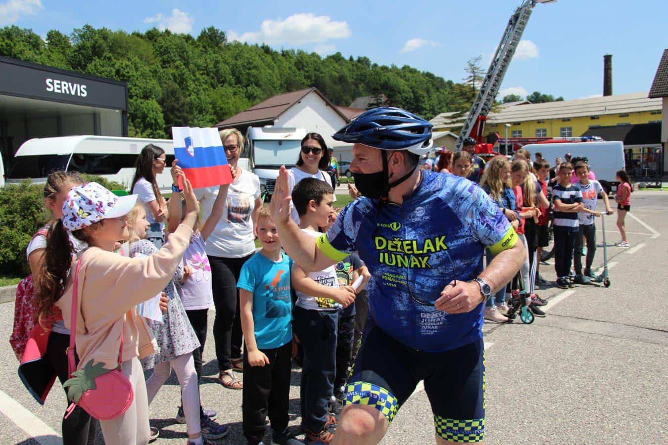 Topel sprejem so mu pripravili tudi predstavniki Glasbene šole Radlje ob Dravi in člani PGD Radlje, ki so dejali, da so zelo veseli, da so bili del humanitarne akcije in so prispevali delček za otroke. "Deželak - junak, naj ti noge zdržijo do morja ...," so dodali glasbeniki, gasilci PGD Radlje pa pravijo: "Kapo dol ekipa."