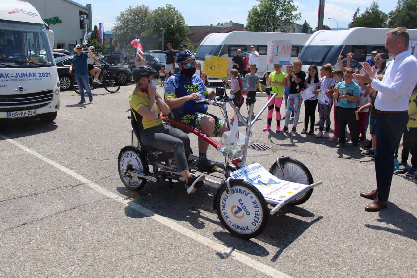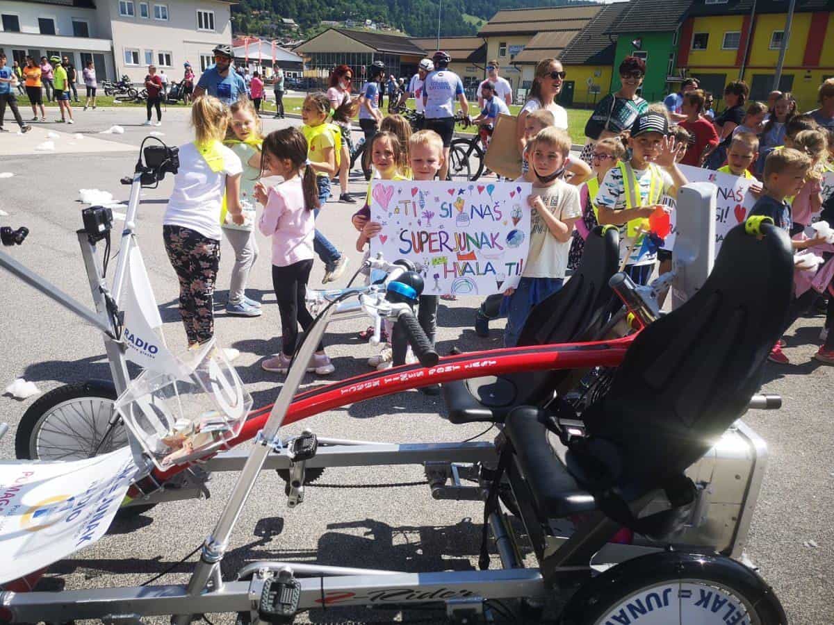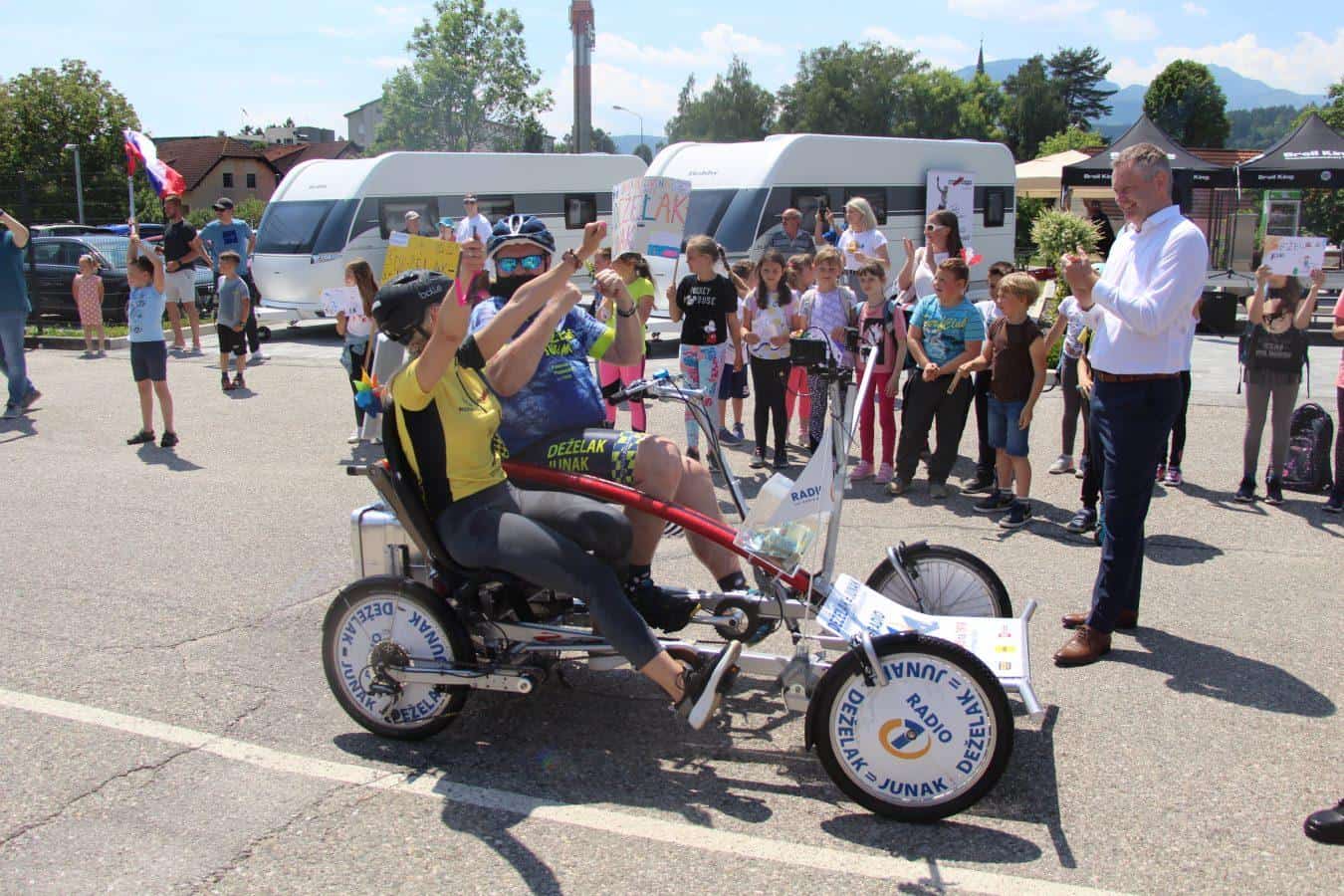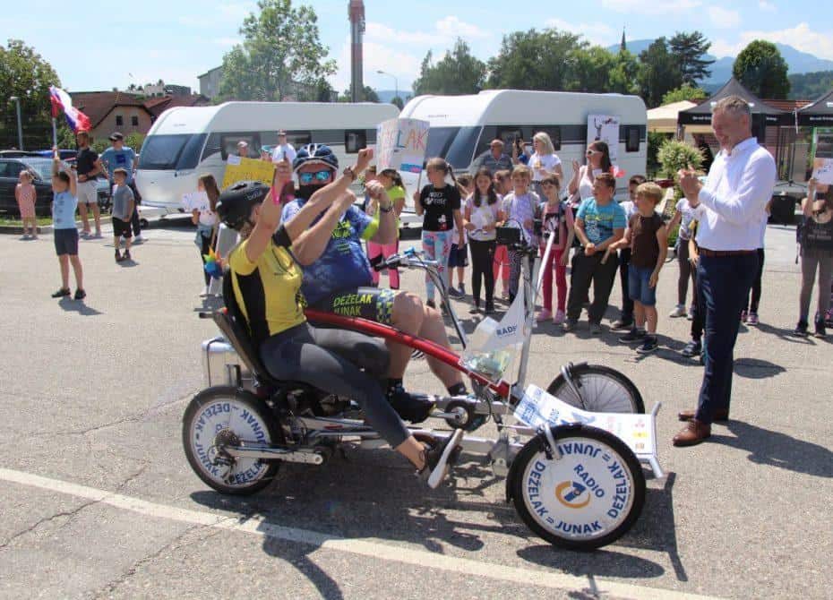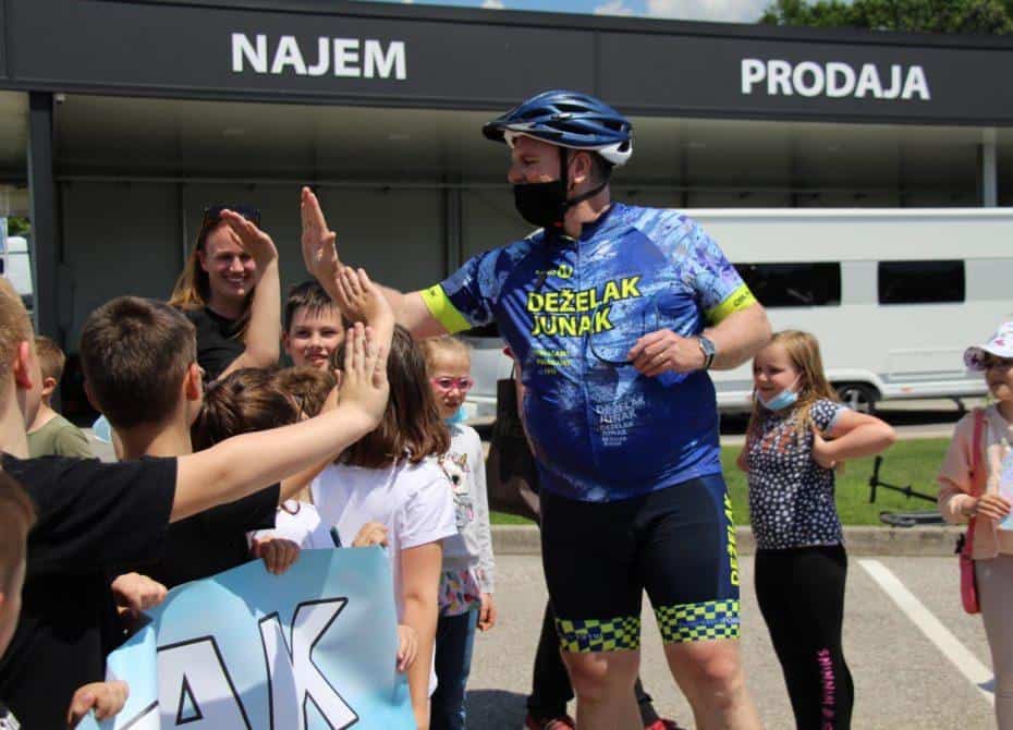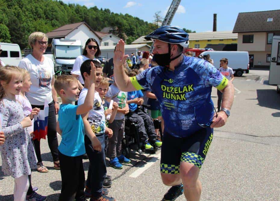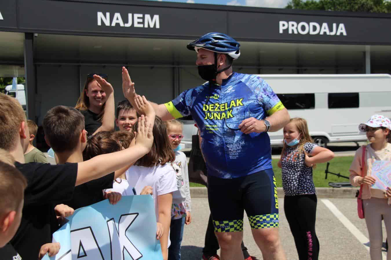 Topel sprejem so mu pripravili tudi predstavniki Glasbene šole Radlje ob Dravi in člani PGD Radlje, ki so dejali, da so zelo veseli, da so bili del humanitarne akcije in so prispevali delček za otroke. "Deželak - junak, naj ti noge zdržijo do morja ...," so dodali glasbeniki, gasilci PGD Radlje pa pravijo: "Kapo dol ekipa."