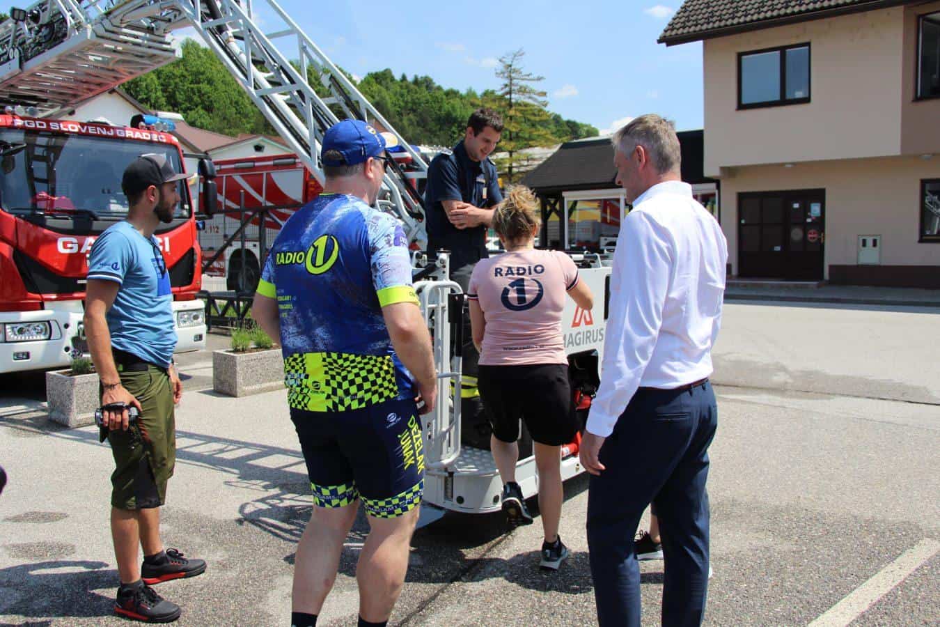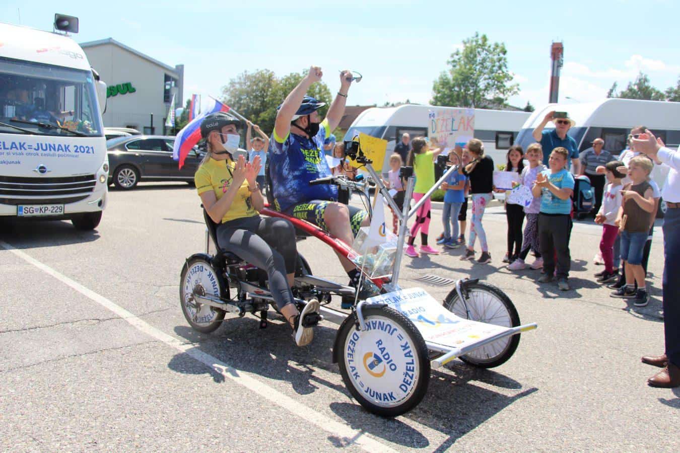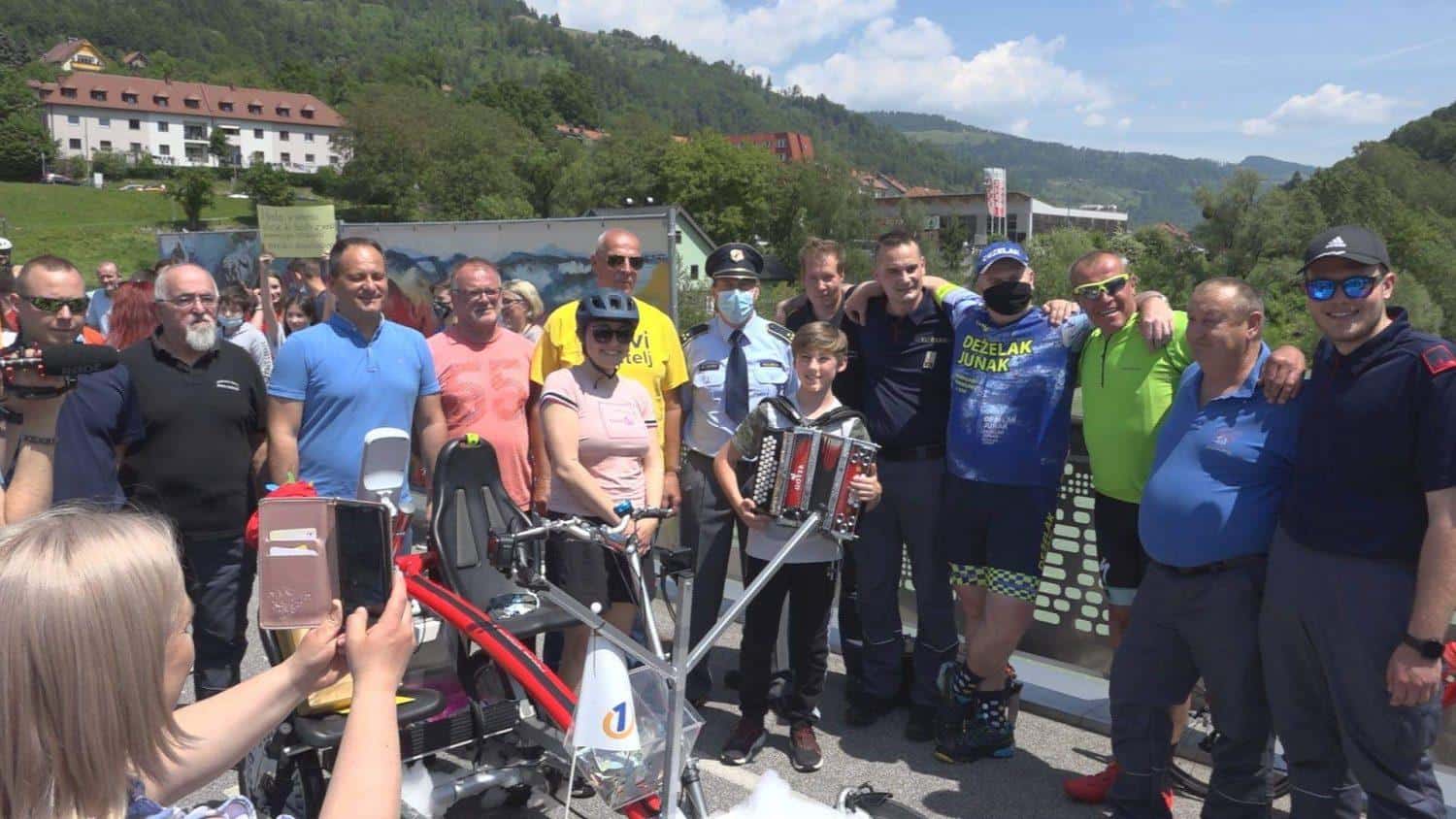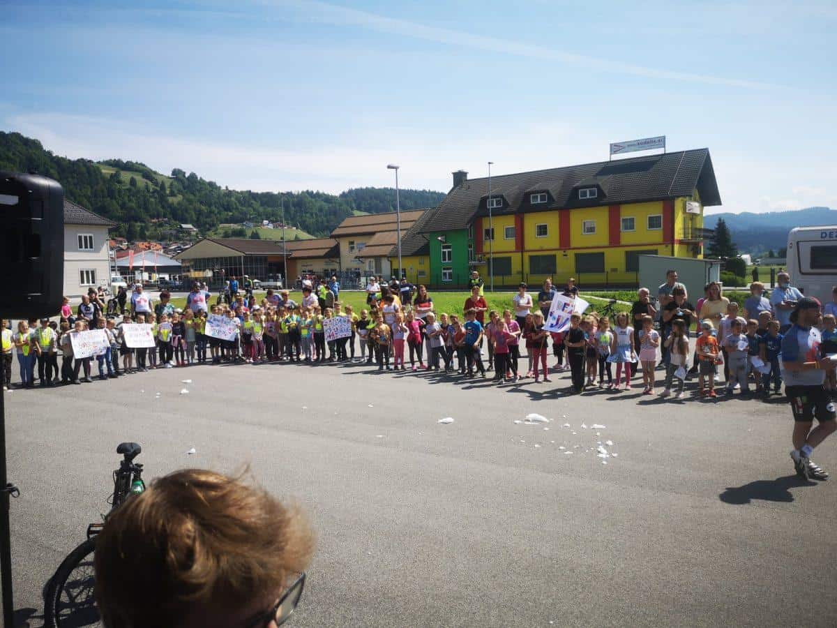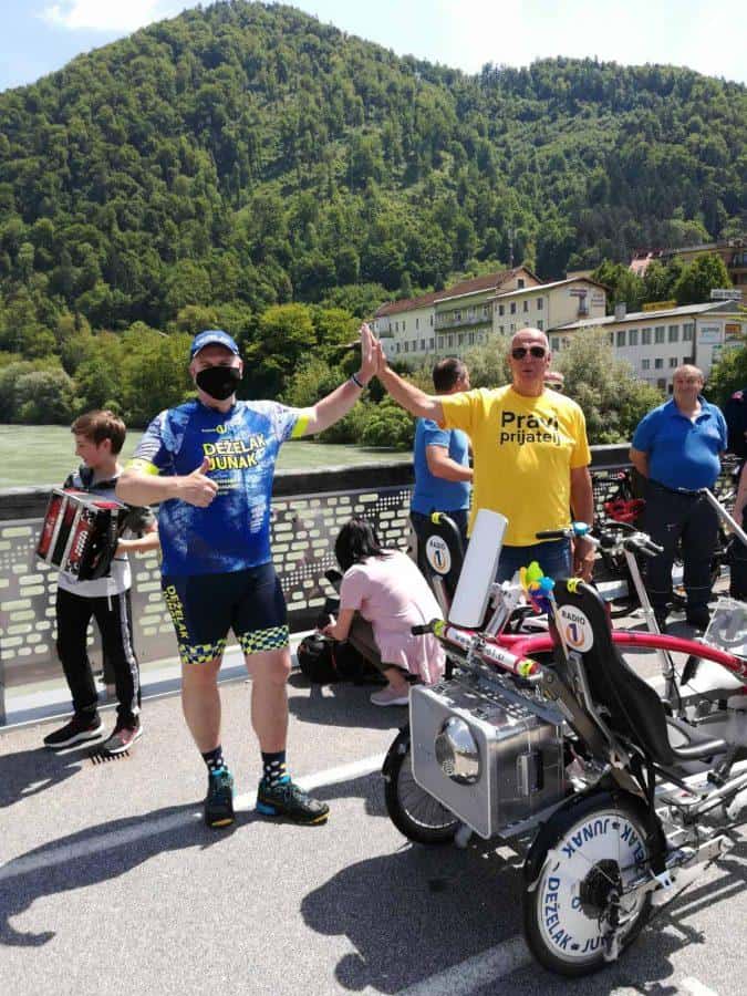 Topel sprejem so mu pripravili tudi predstavniki Glasbene šole Radlje ob Dravi in člani PGD Radlje, ki so dejali, da so zelo veseli, da so bili del humanitarne akcije in so prispevali delček za otroke. "Deželak - junak, naj ti noge zdržijo do morja ...," so dodali glasbeniki, gasilci PGD Radlje pa pravijo: "Kapo dol ekipa."