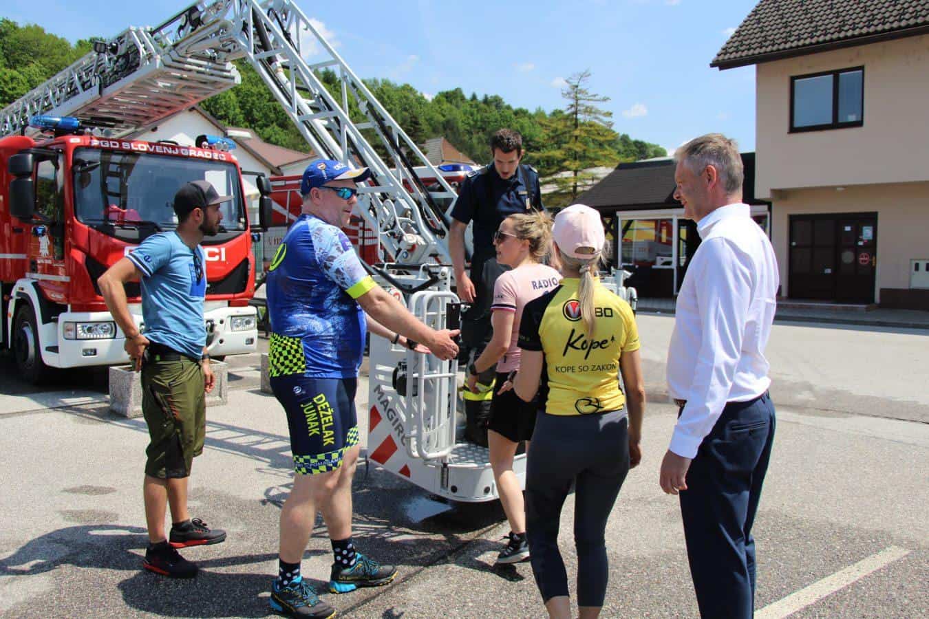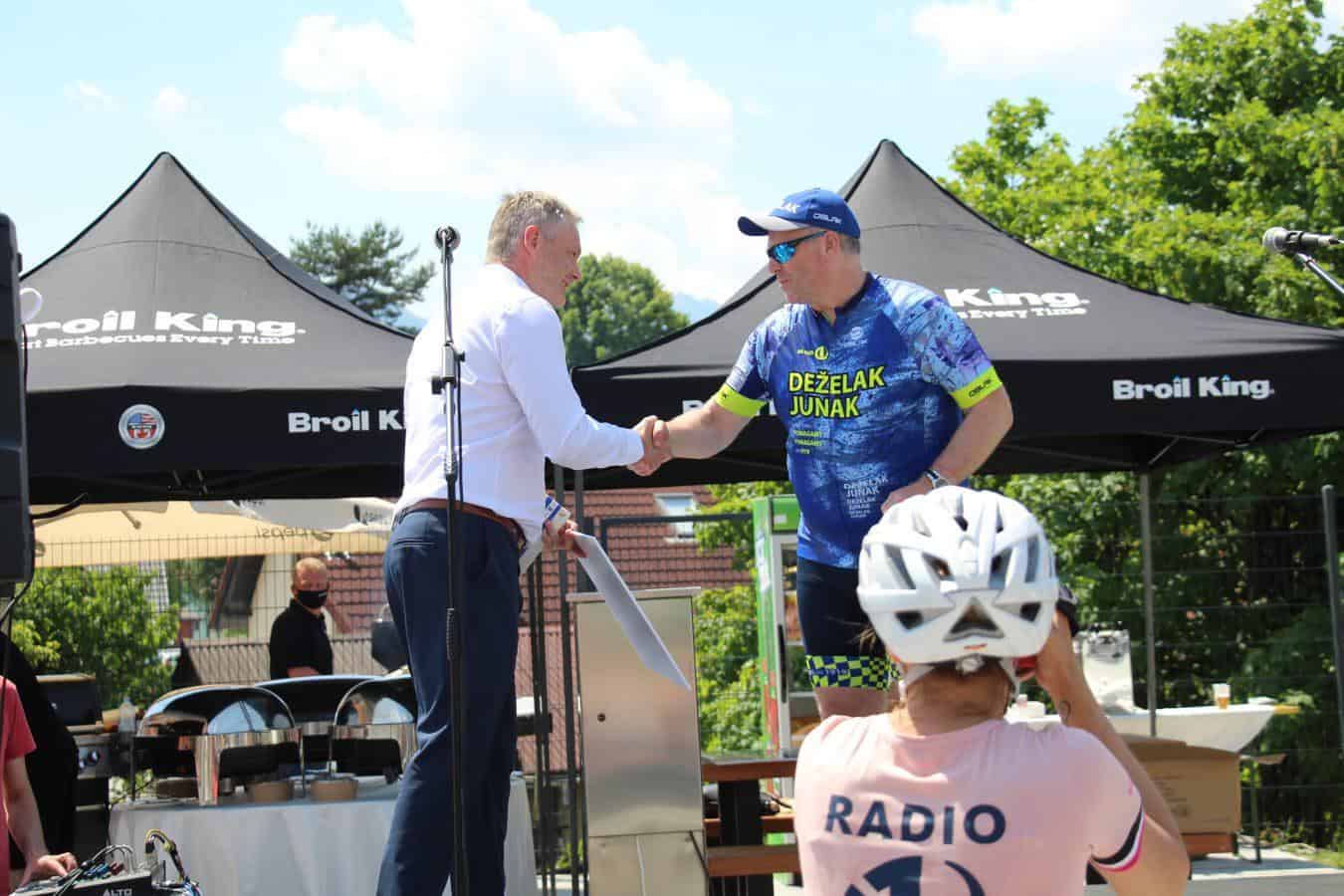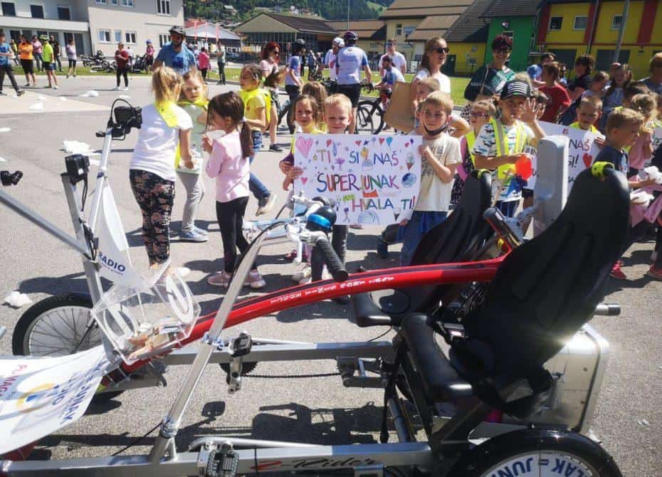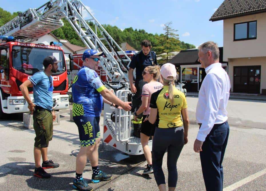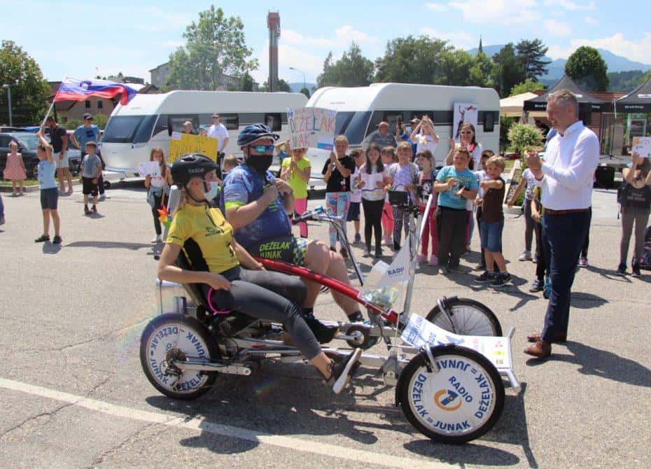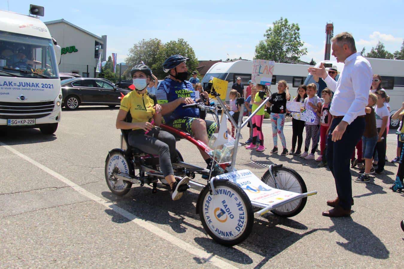 Topel sprejem so mu pripravili tudi predstavniki Glasbene šole Radlje ob Dravi in člani PGD Radlje, ki so dejali, da so zelo veseli, da so bili del humanitarne akcije in so prispevali delček za otroke. "Deželak - junak, naj ti noge zdržijo do morja ...," so dodali glasbeniki, gasilci PGD Radlje pa pravijo: "Kapo dol ekipa."