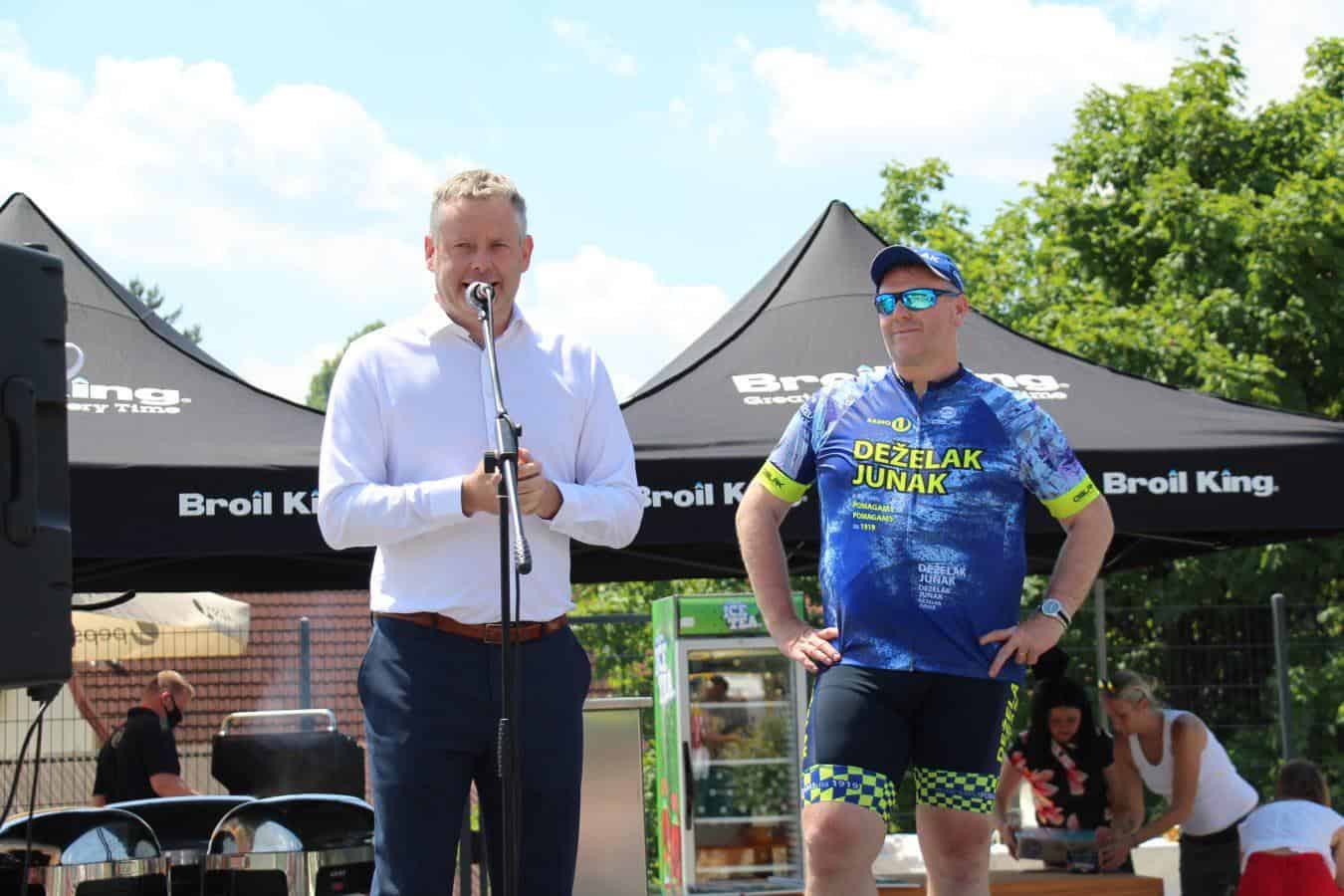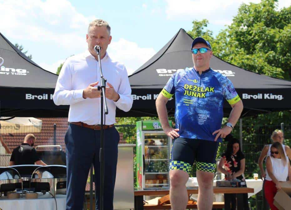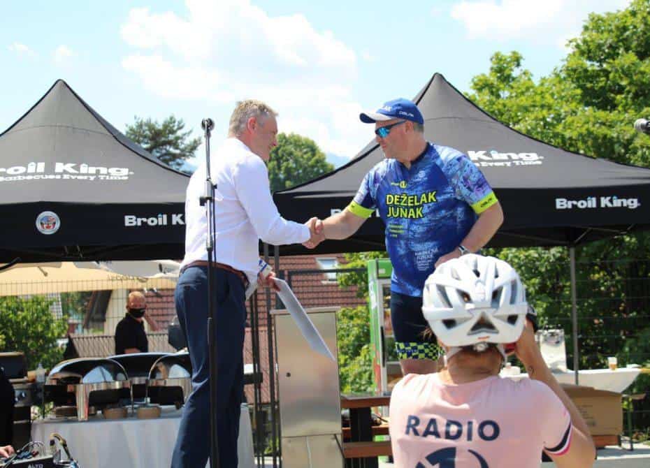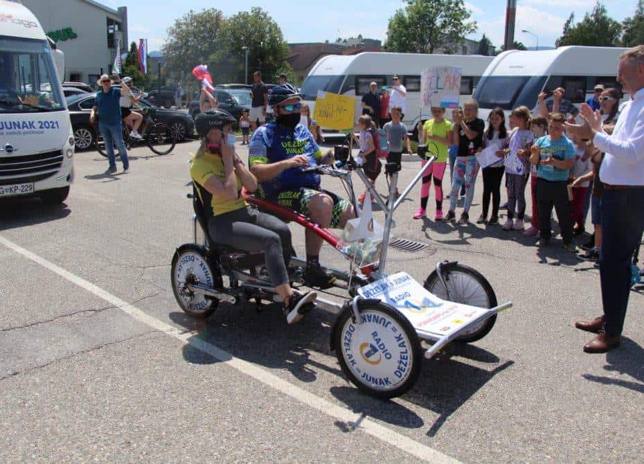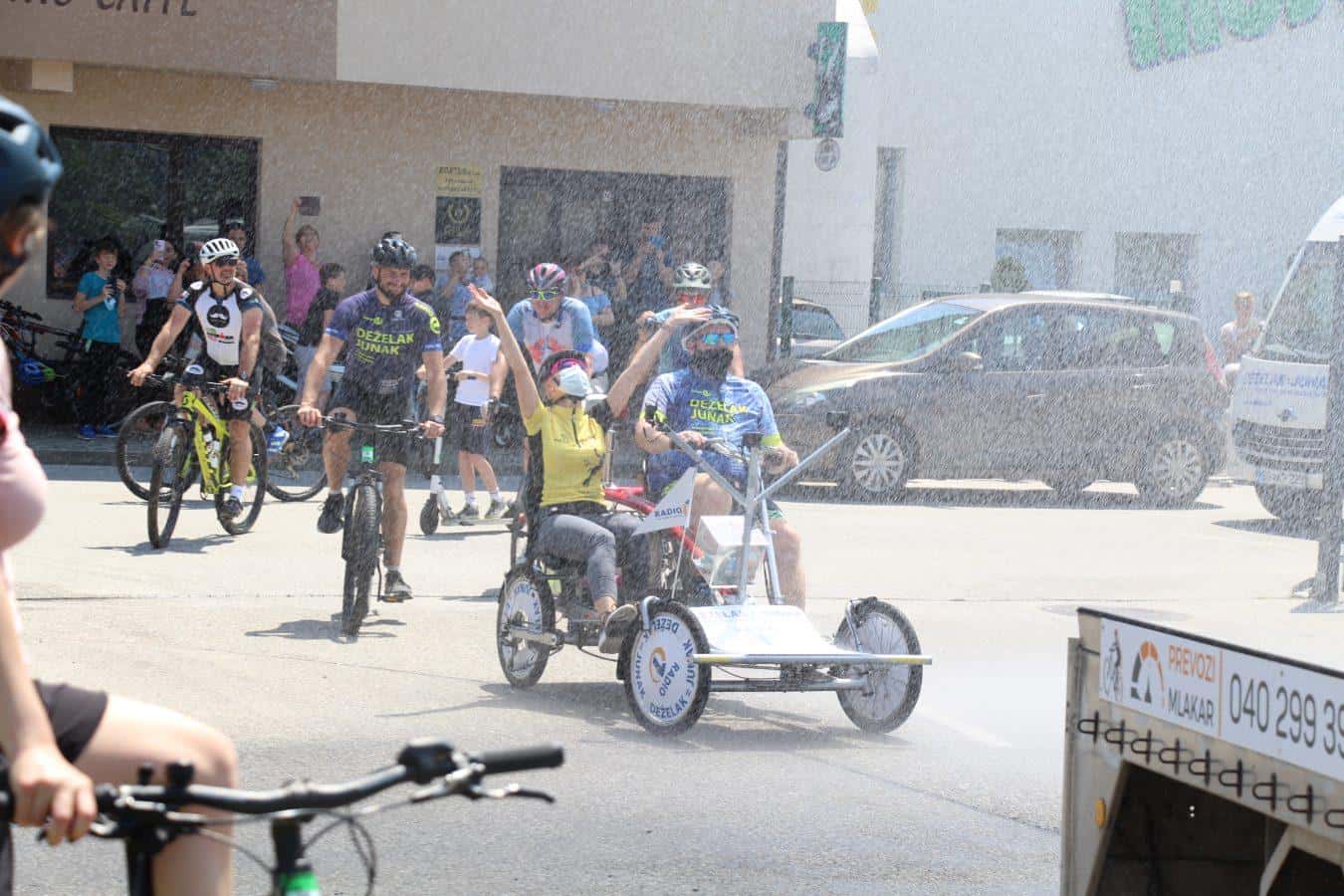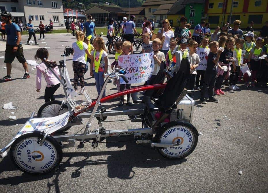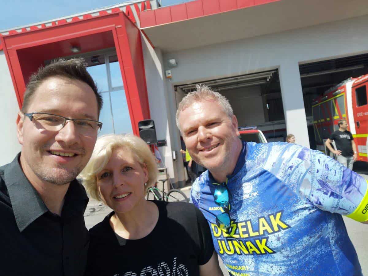 Topel sprejem so mu pripravili tudi predstavniki Glasbene šole Radlje ob Dravi in člani PGD Radlje, ki so dejali, da so zelo veseli, da so bili del humanitarne akcije in so prispevali delček za otroke. "Deželak - junak, naj ti noge zdržijo do morja ...," so dodali glasbeniki, gasilci PGD Radlje pa pravijo: "Kapo dol ekipa."