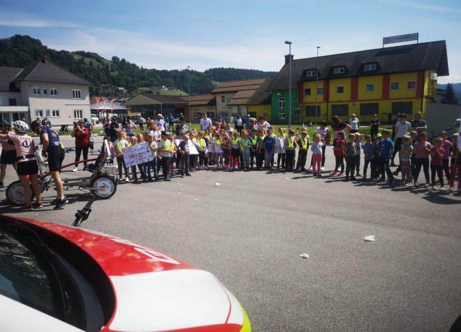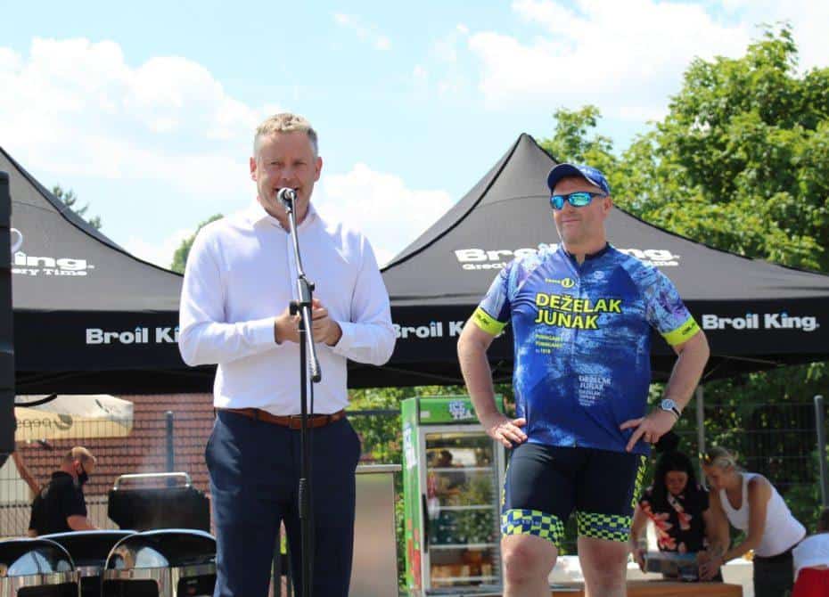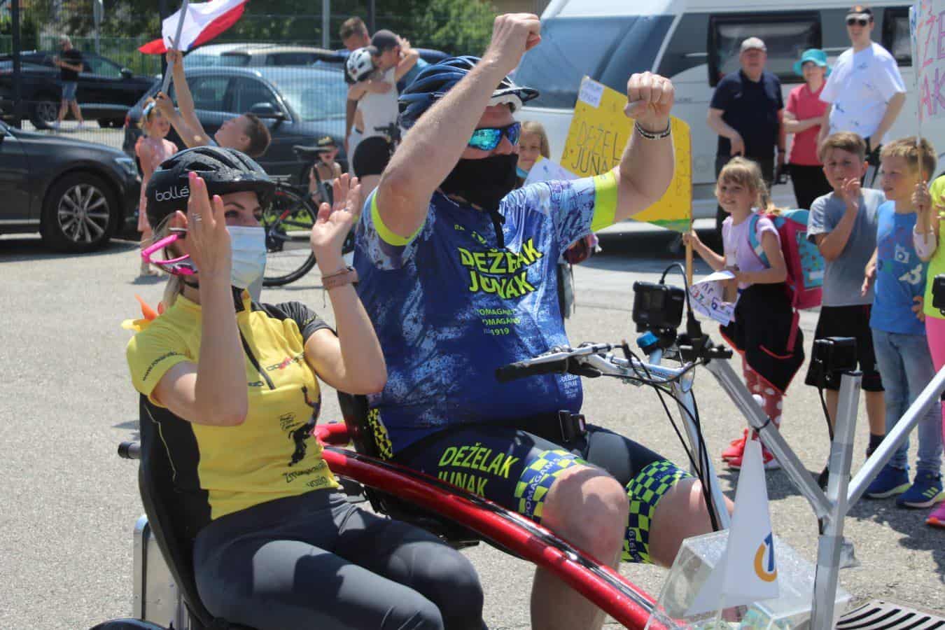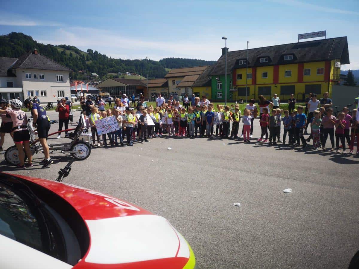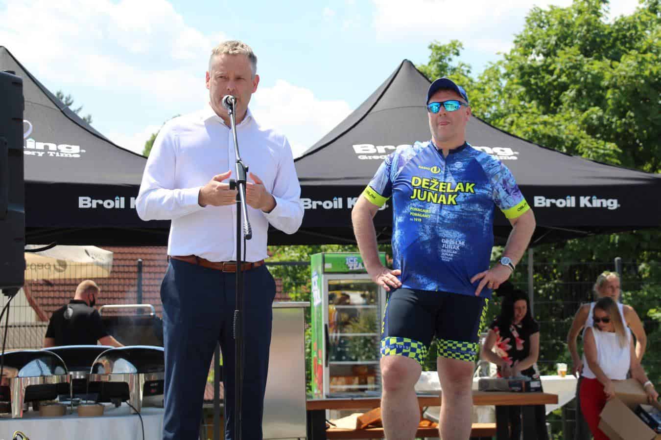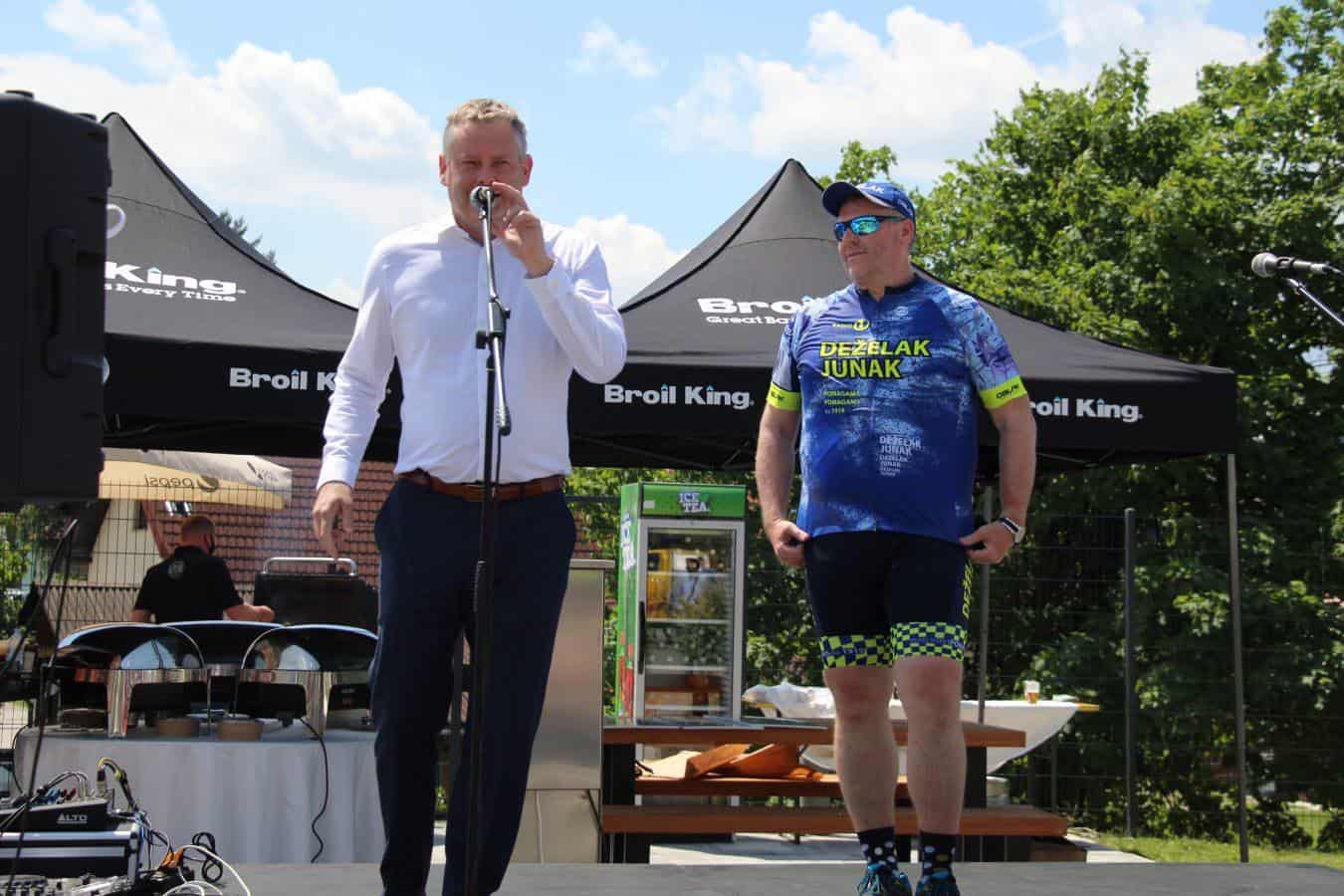 Topel sprejem so mu pripravili tudi predstavniki Glasbene šole Radlje ob Dravi in člani PGD Radlje, ki so dejali, da so zelo veseli, da so bili del humanitarne akcije in so prispevali delček za otroke. "Deželak - junak, naj ti noge zdržijo do morja ...," so dodali glasbeniki, gasilci PGD Radlje pa pravijo: "Kapo dol ekipa."
