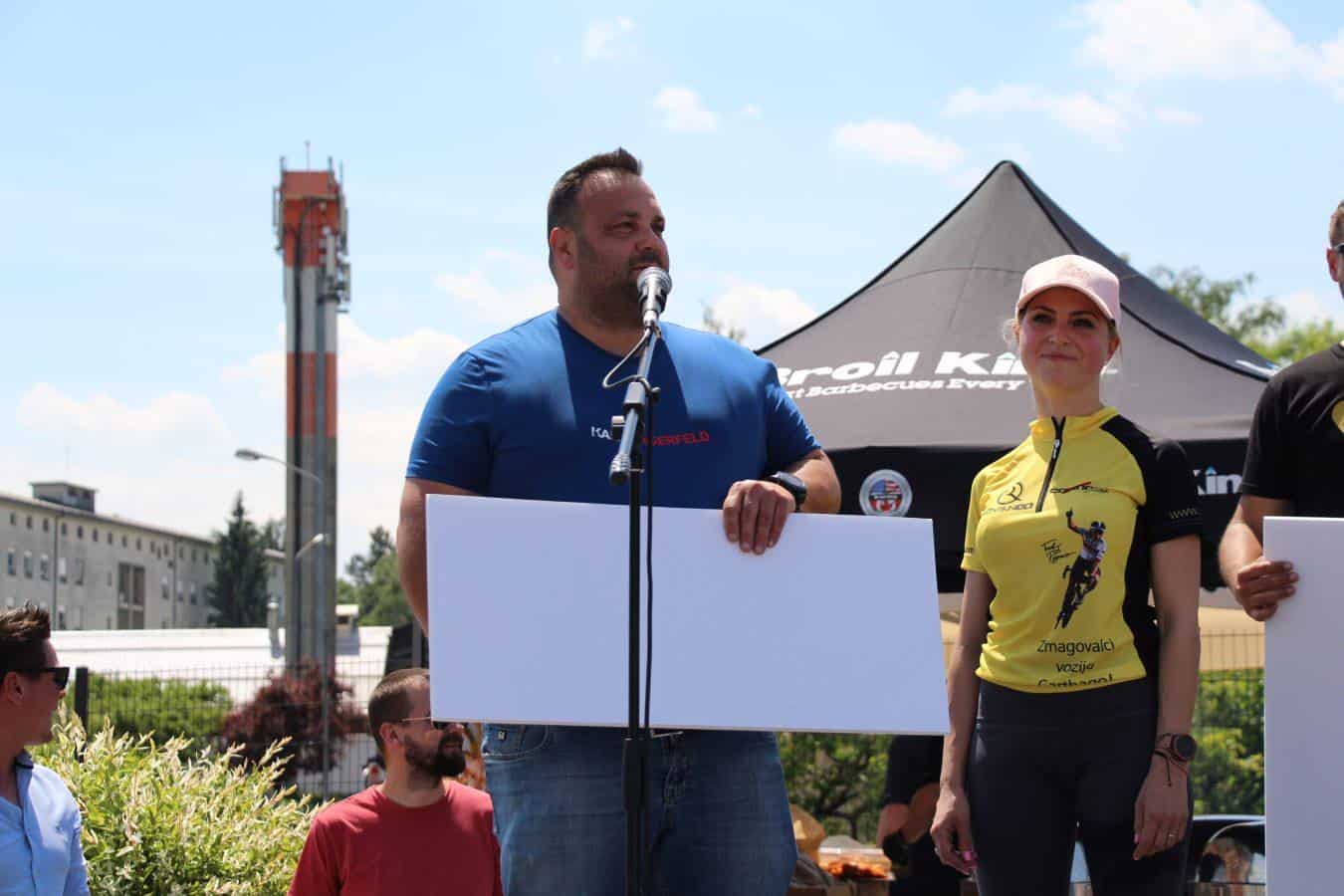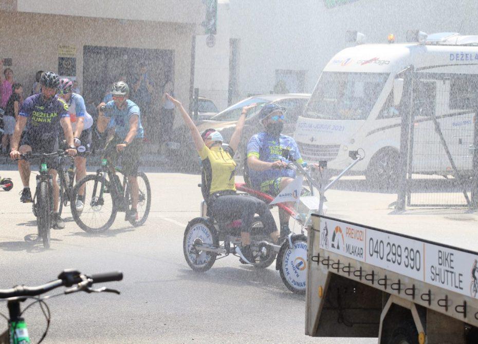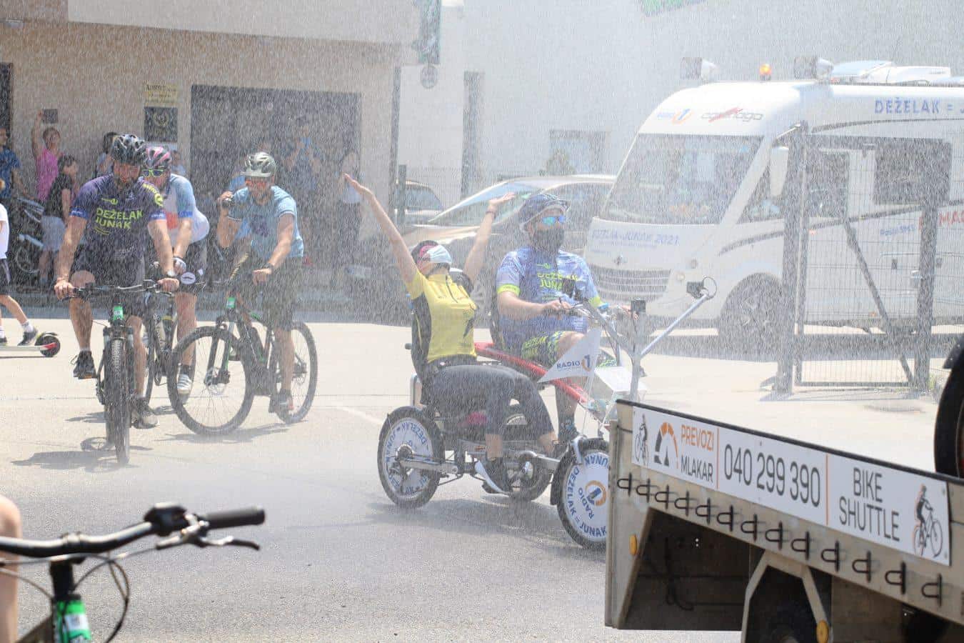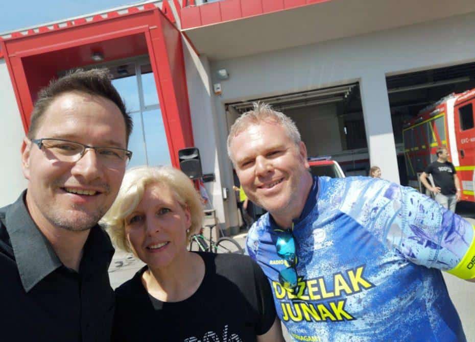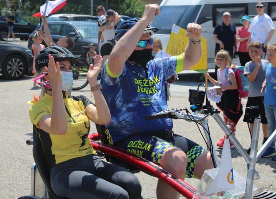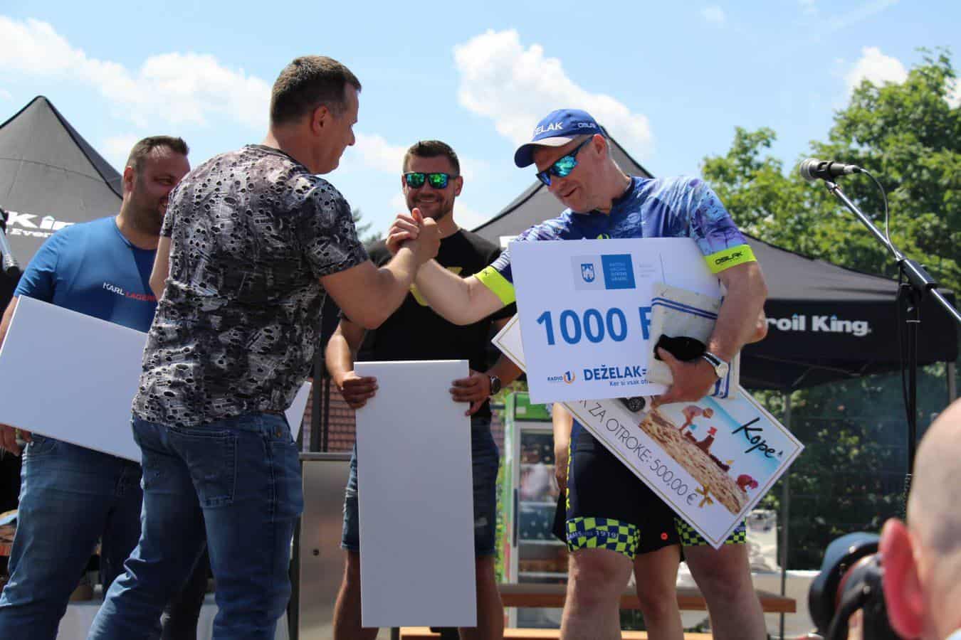 Topel sprejem so mu pripravili tudi predstavniki Glasbene šole Radlje ob Dravi in člani PGD Radlje, ki so dejali, da so zelo veseli, da so bili del humanitarne akcije in so prispevali delček za otroke. "Deželak - junak, naj ti noge zdržijo do morja ...," so dodali glasbeniki, gasilci PGD Radlje pa pravijo: "Kapo dol ekipa."