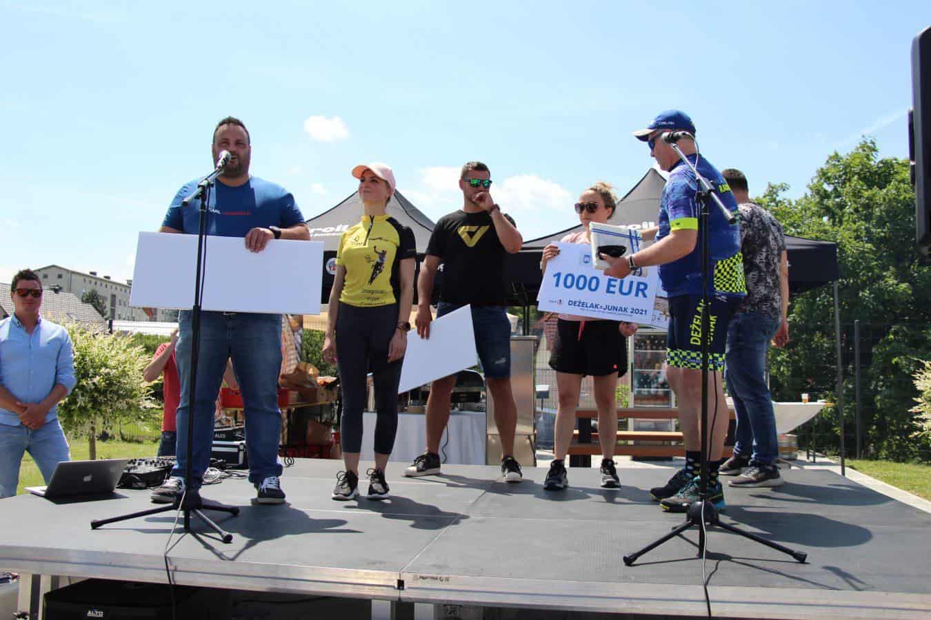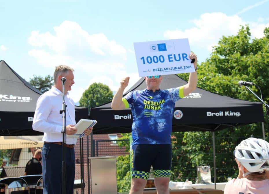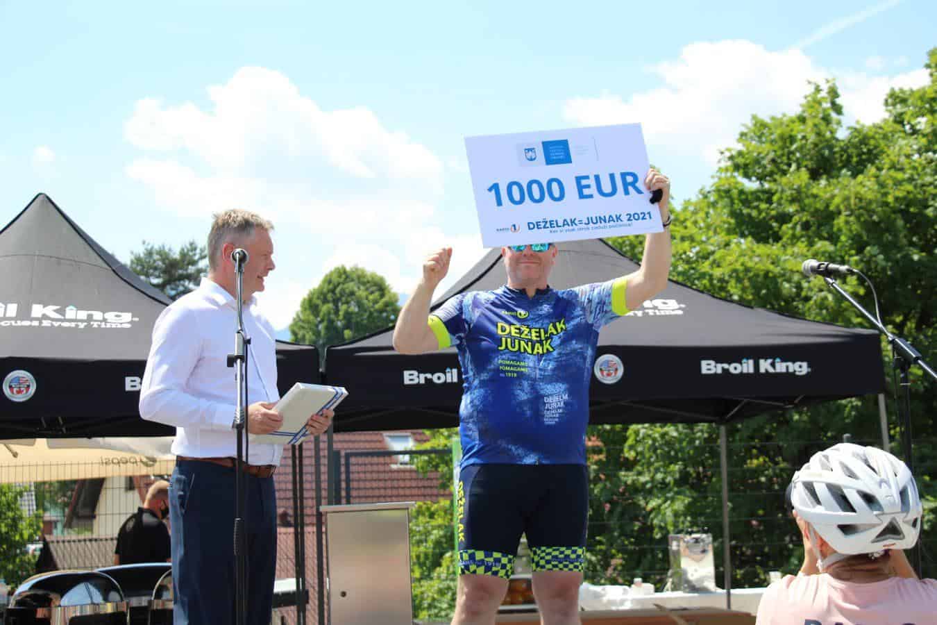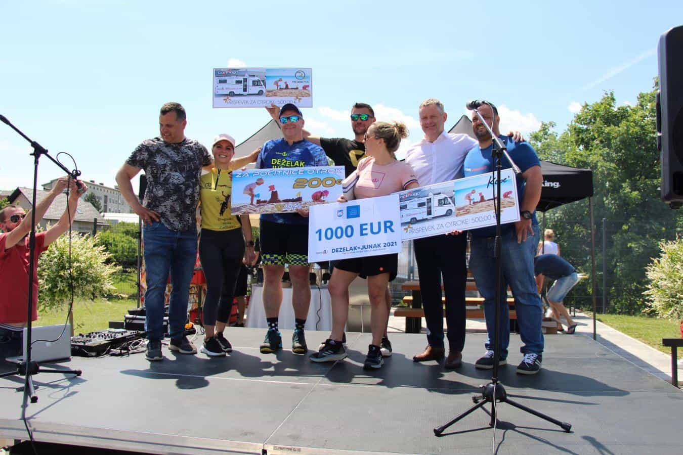 Velik sprejem za junaka, ki zbira sredstva za otroke so pripravili tudi v Slovenj Gradcu. Pričakali so ga otroci iz osnovne sole, predstavniki občine, tudi slovenjgraški župan Tilen Klugler. Direktor podjetja Vabo Boštjan Paradiž je Deželaku podaril bon v imenu smučišča Kope, svoj delež so med prispevali tudi center Rovando in Gralprint. Bon v vrednosti tisoč evrov pa je Deželaku v imenu občine predal tudi slovenjgraški župan Klugler.