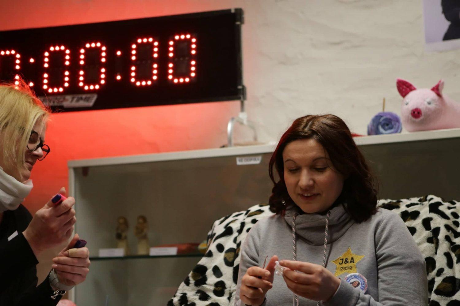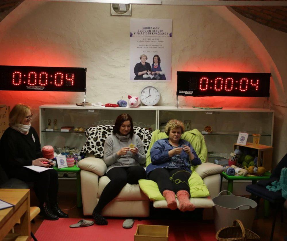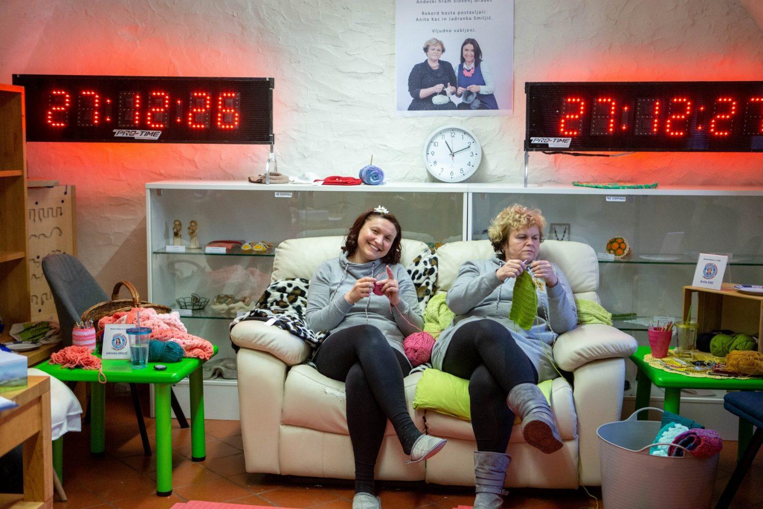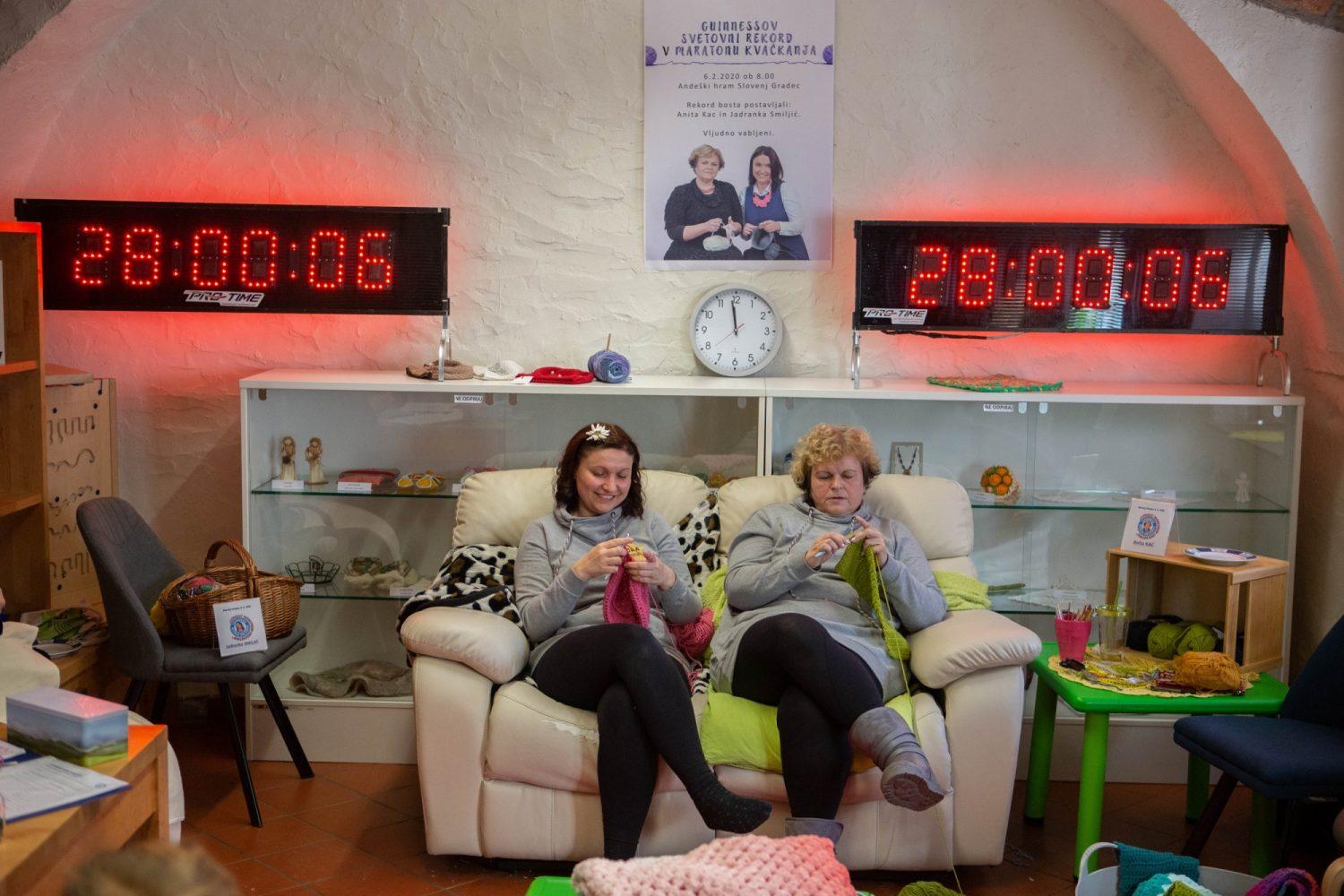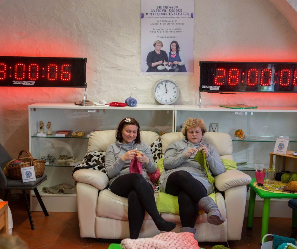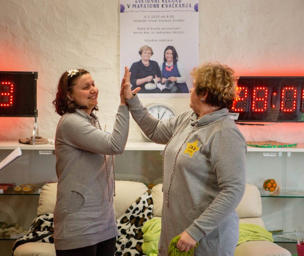 Danes točno ob 8. uri zjutraj sta se Anita Kac iz Šentjanža pri Dravogradu in Jadranka Smiljić iz Slovenj Gradca po 24. urah neprekinjenega kvačkanja razveselili novega Guinnessovega rekorda v maratonu neprestanega kvačkanja. Vendar to še zanju ni bilo dovolj, na odpiranje šampanjca smo morali počakati do 12.05, ko sta zaključili z več kot 28-urnim maratonom kvačkanja, ki ste ga lahko preko našega Youtube kanala spremljali tudi v živo.