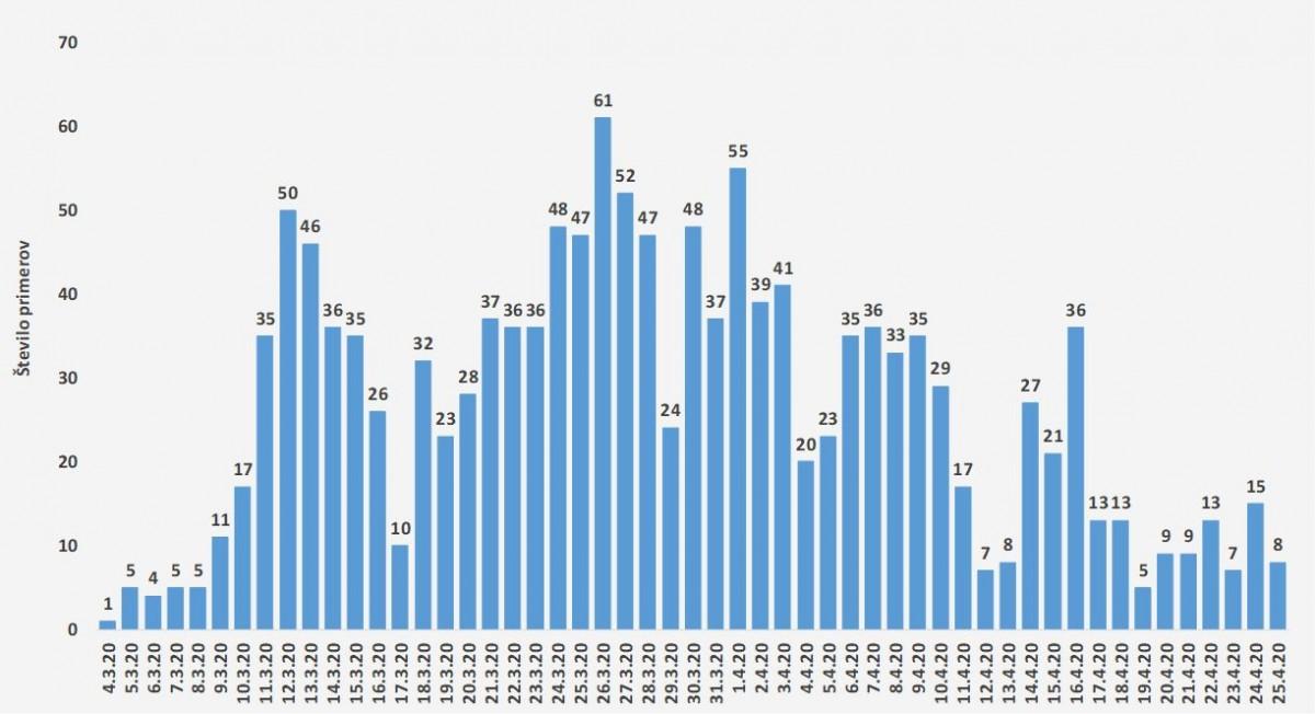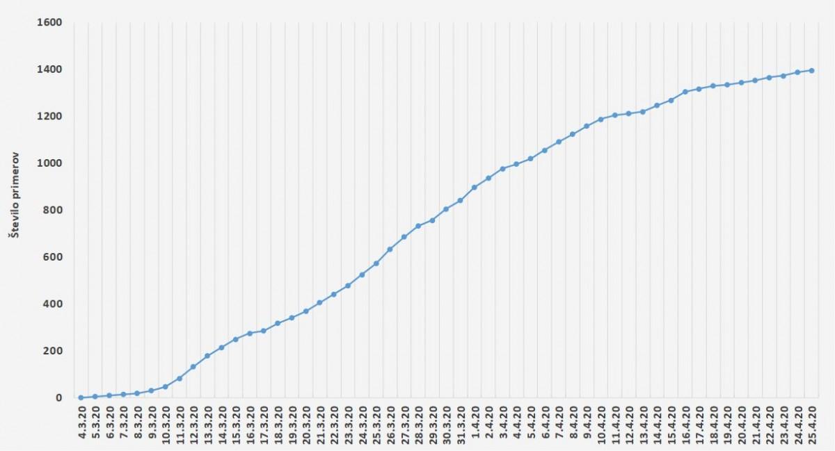 Do 25. 4. 2020 do 24. ure je bilo opravljenih 49.813 testiranj, od tega je bilo 1.407 pozitivnih testov.
