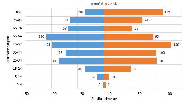 Skupno število pozitivnih primerov in število novih primerov v preteklem dnevu po spolu je 1317, od tega 13 novih potrjenih primerov.