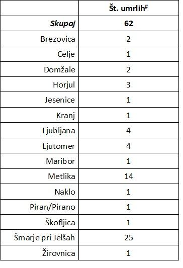 Do 18. 4. 2020 do 24. ure je bilo opravljenih 41.265 testiranj, od tega je bilo 1341 pozitivnih testov.