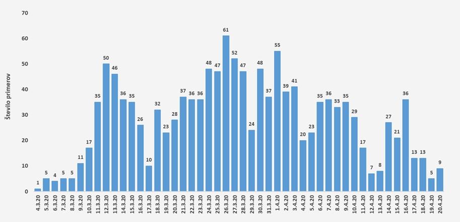 Dnevno število potrjenih primerov COVID-19 do vključno 20. 4. 2020
