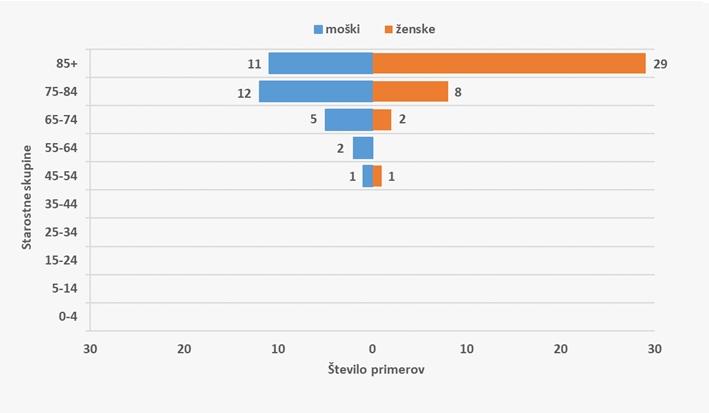 Število potrjenih primerov COVID-19 po spolu in starostnih skupinah do vključno 20. 4. 2020