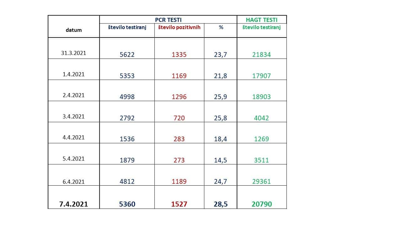 - Št. pozitivnih: 1527 (28,5 %)