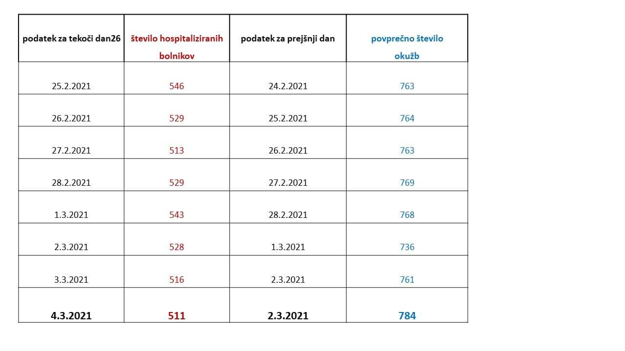 - Št. umrlih: 4- 7-dnevno povprečje: 784