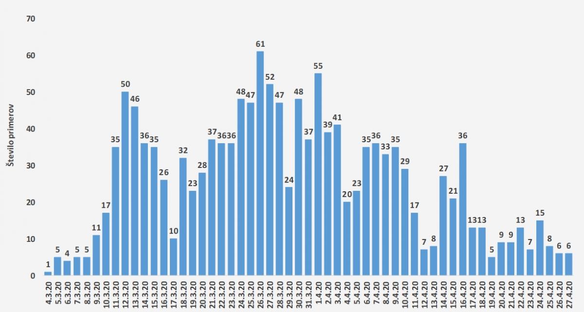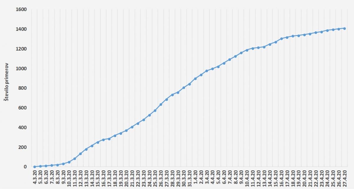 Do 27. 4. 2020 do 24. ure je bilo opravljenih 51.470 testiranj, od tega je bilo 1.419 pozitivnih testov.