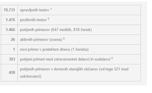 V Sloveniji je v preteklem dnevu potrjena ena nova okužba z novim koronavirusom. Na Koroškem pa še vedno ostajamo pri 52 potrjenih primerih.