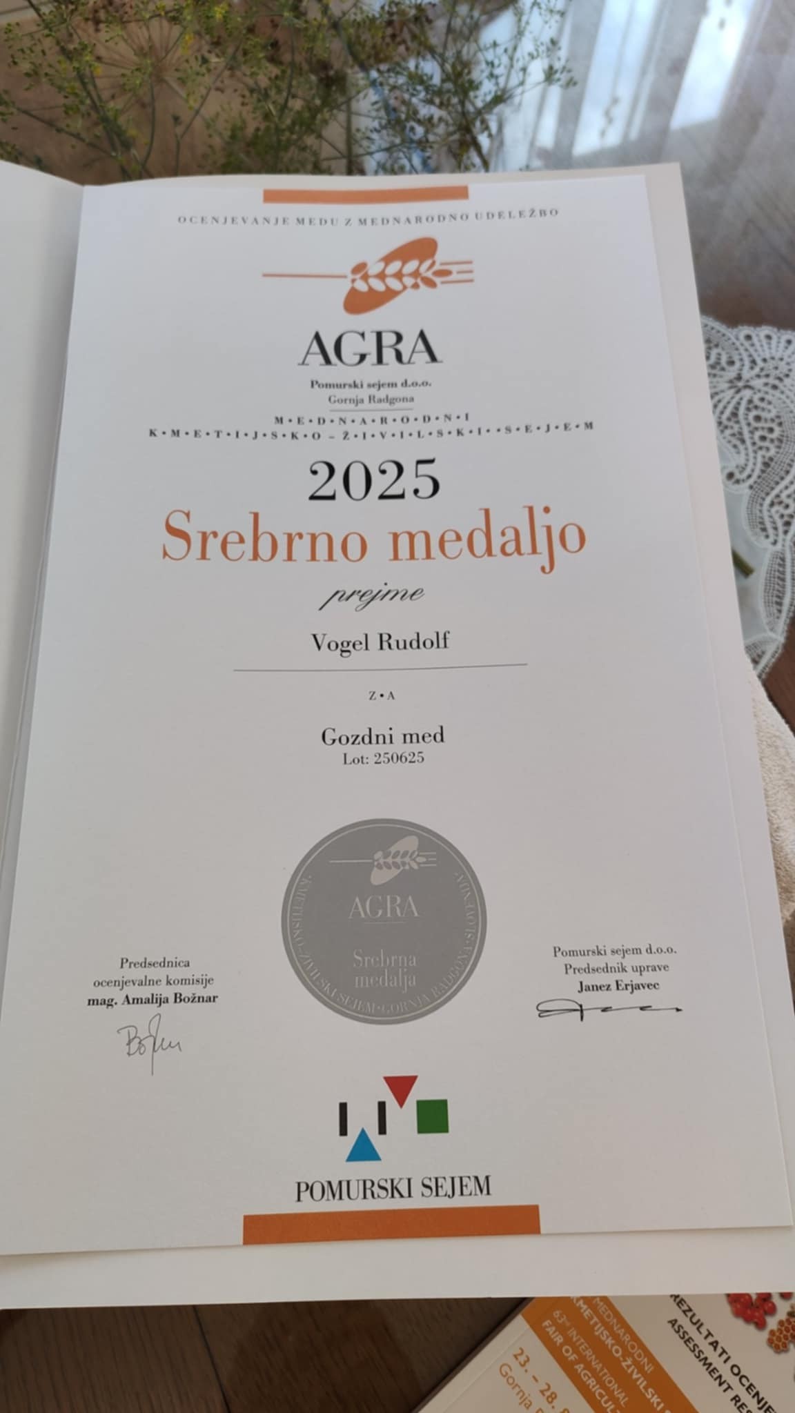- Rudolf Vogel Prisoje 84, SI-2391 Prevalje Telefon: 041/347 229 srebrna medalja za gozdni med (G);