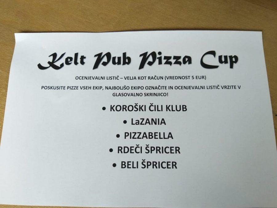 Kelt pub, ki je sicer prepoznaven po organizaciji prireditve Keltova žlica, je tokrat poskrbel še za eno zanimivo prireditev, nad katero so bili navdušeni tako udeleženci tekmovanja kot obiskovalci. Tokrat so pred lokalom pripravili tekmovanje v peki pic, Kelt pub Pizza Cup, ki so se ga lahko udeležili tako amaterski kot profesionalni picopeki.