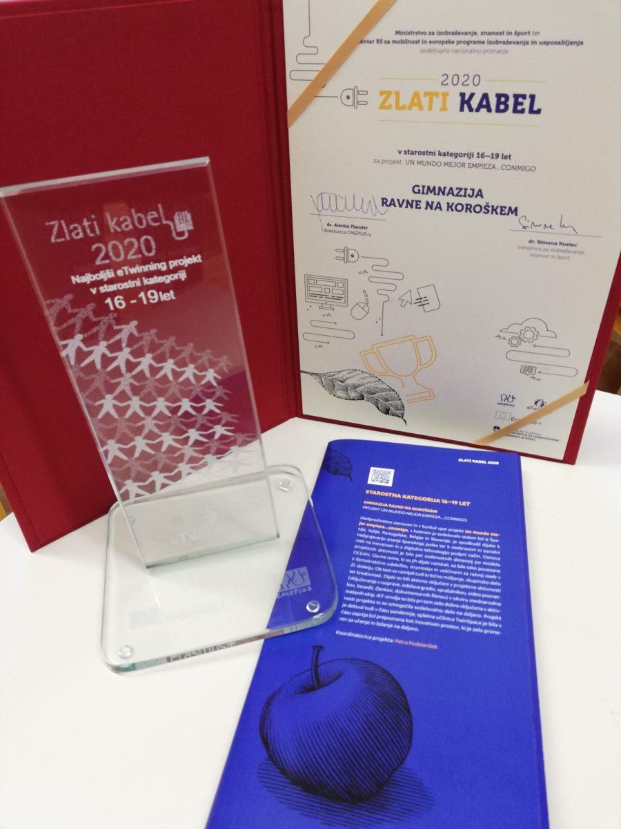 Nacionalna svetovalna služba (NSS) eTwinning podeljuje nacionalno nagrado Zlati kabel slovenskim šolam že vse od leta 2006. Nagrada je priznanje šolam in učiteljem za kakovostno opravljeno delo na področju mednarodnih sodelovalnih projektov na daljavo, ki se izvajajo v okviru akcije eTwinning.
